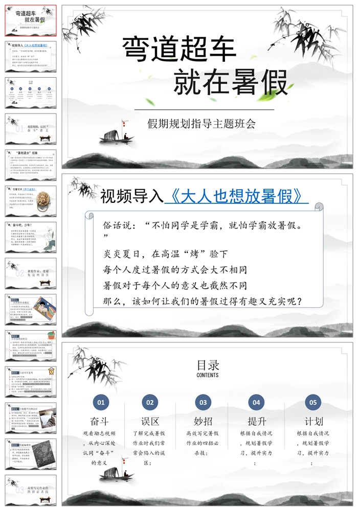 【8066】【暑假规划】《弯道超车就在暑假》暑期规划指导主题班会PPT课件(课件+视频)