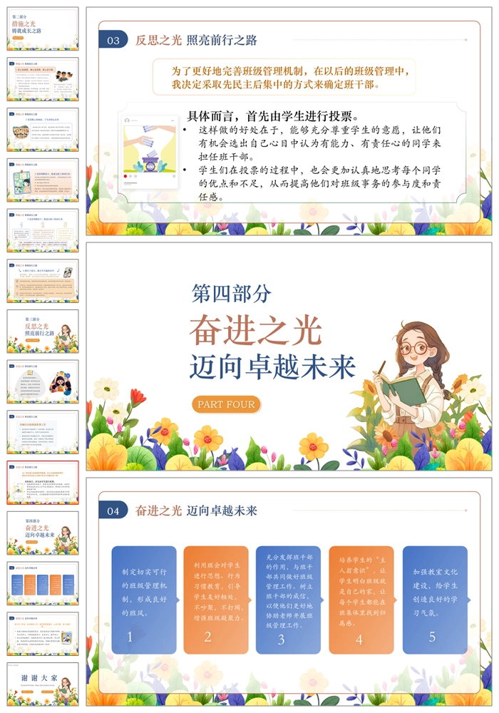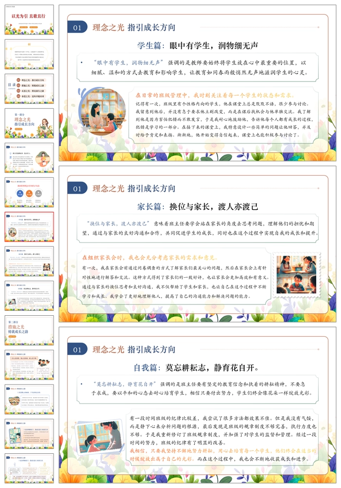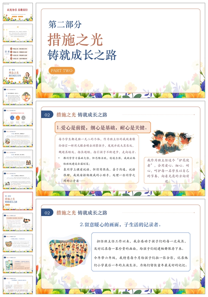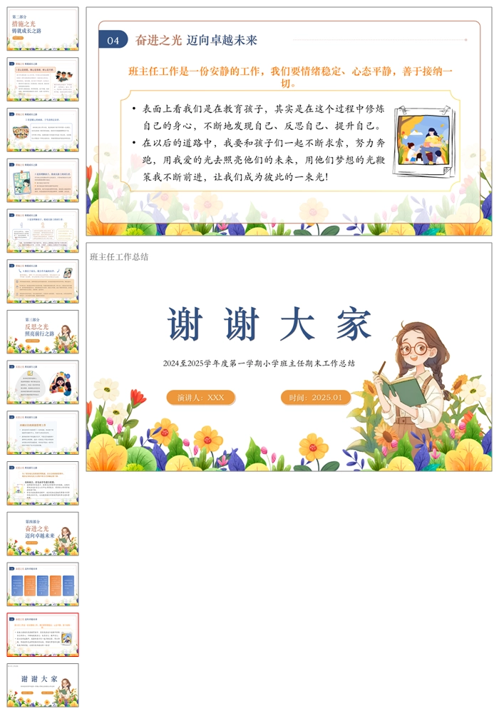【8243】【工作总结】《以光为引且歌且行》小学班主任期末工作总结PPT(课件+发言稿)
