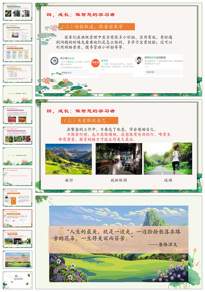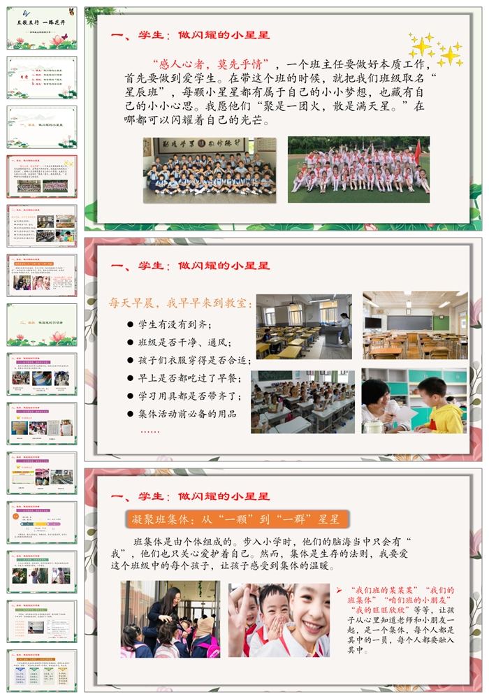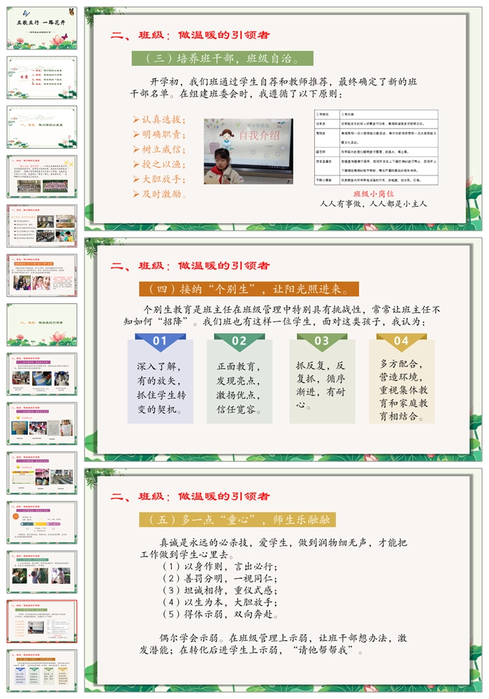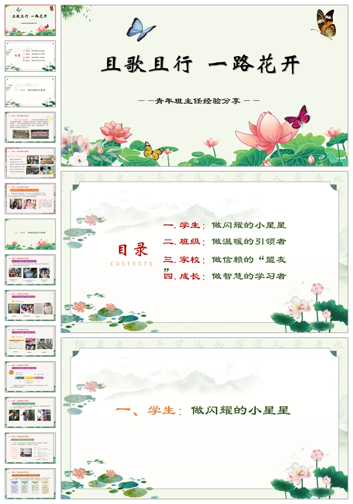 【8252】【经验交流】《且歌且行一路花开》青年班主任工作经验交流PPT(课件+发言稿)