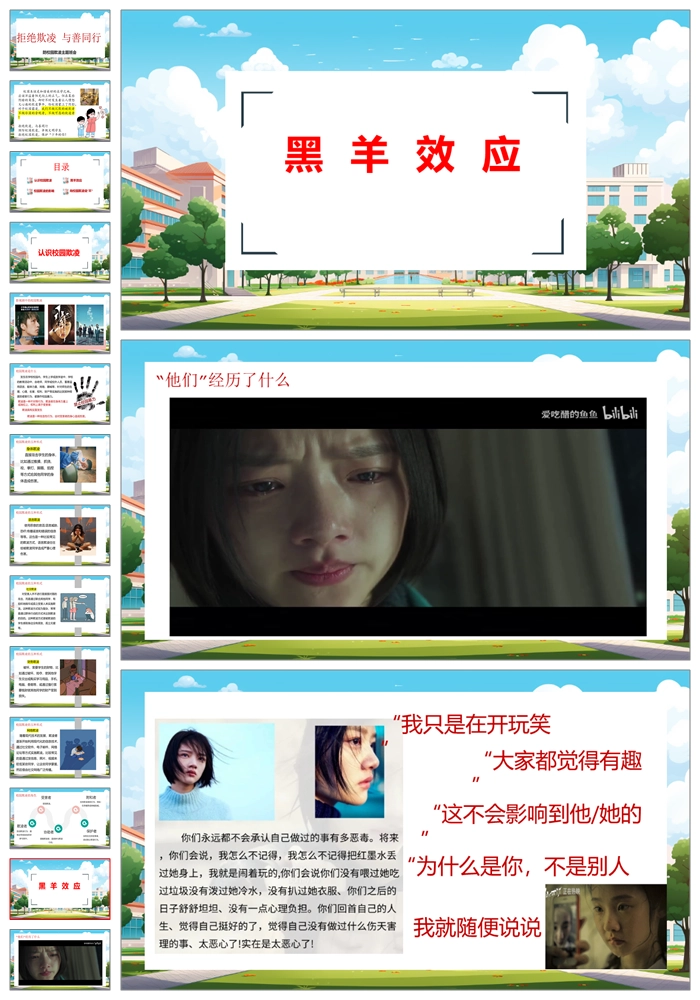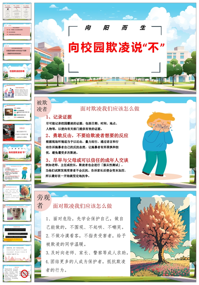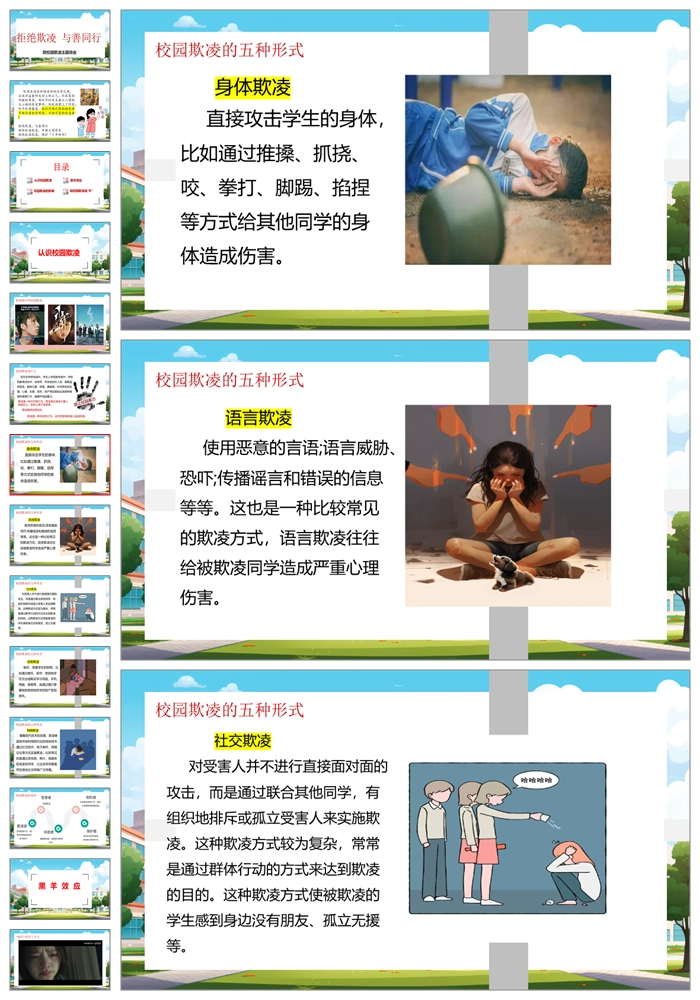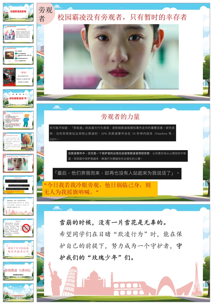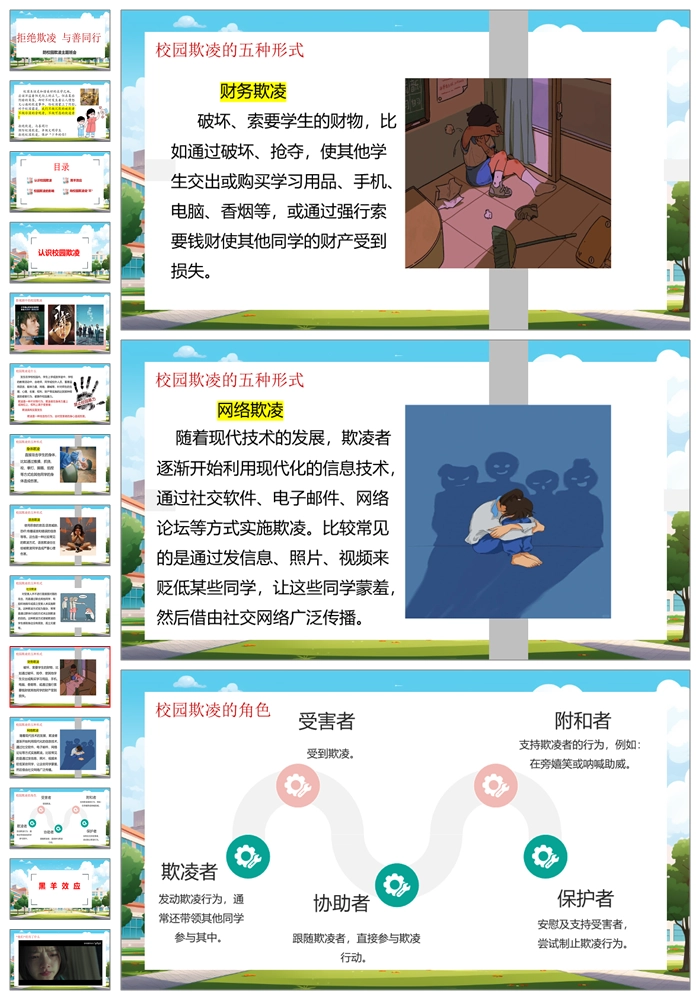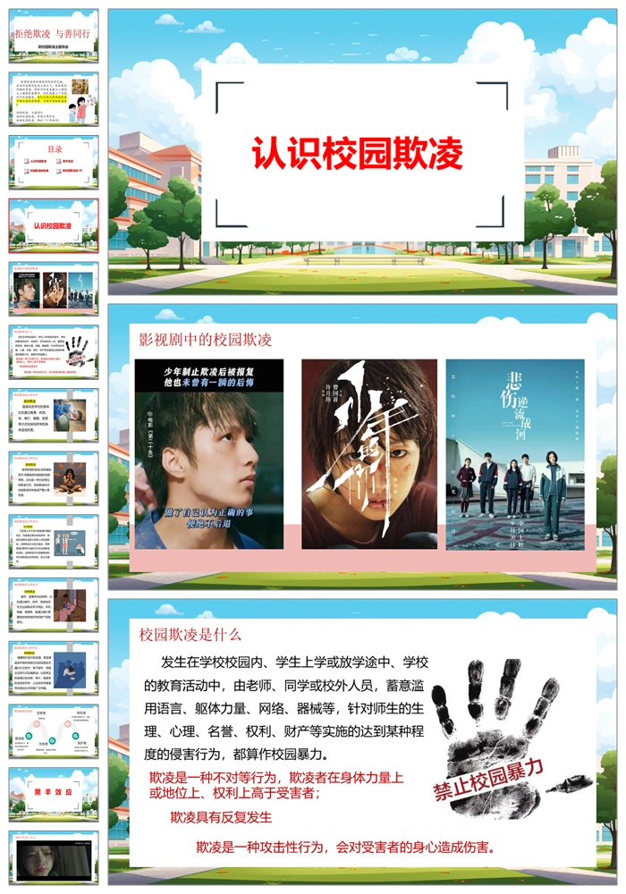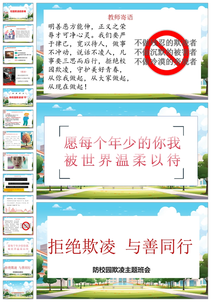 【8326】【预防欺凌】《拒绝欺凌与善同行》拒绝校园欺凌班会PPT(课件含视频+教案)