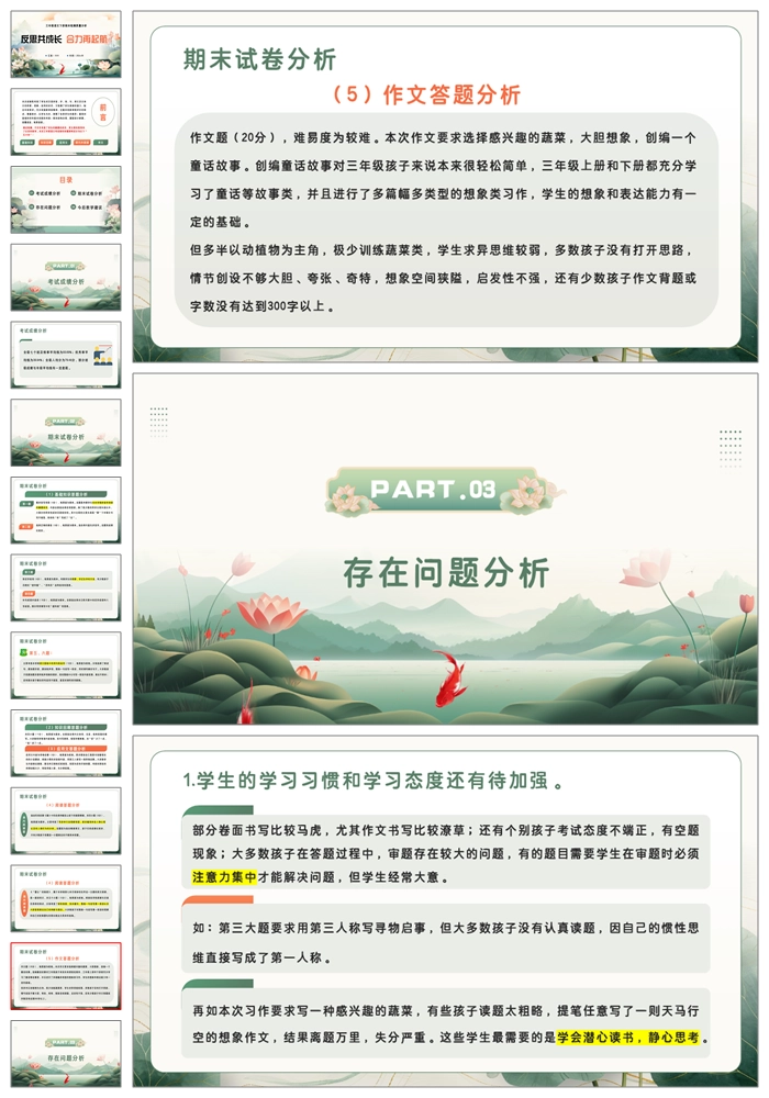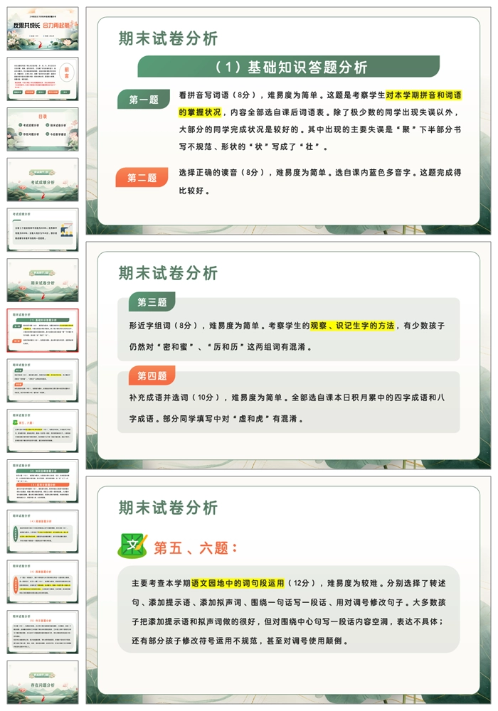 【8403】【三下】【语文】【反思共成长 合力再起航】三年级语文期末质量分析PPT(课件+发言稿)