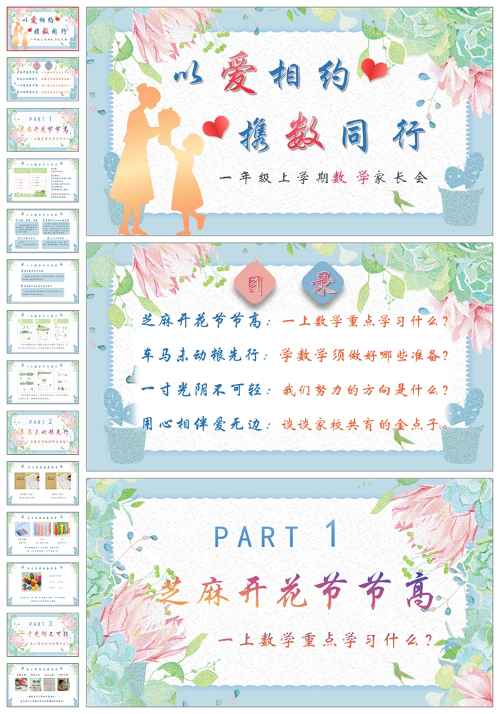【5070】北师大版一上数学开学家长会一年级上学期数学开学家长会PPT课件+发言稿+暖场视频