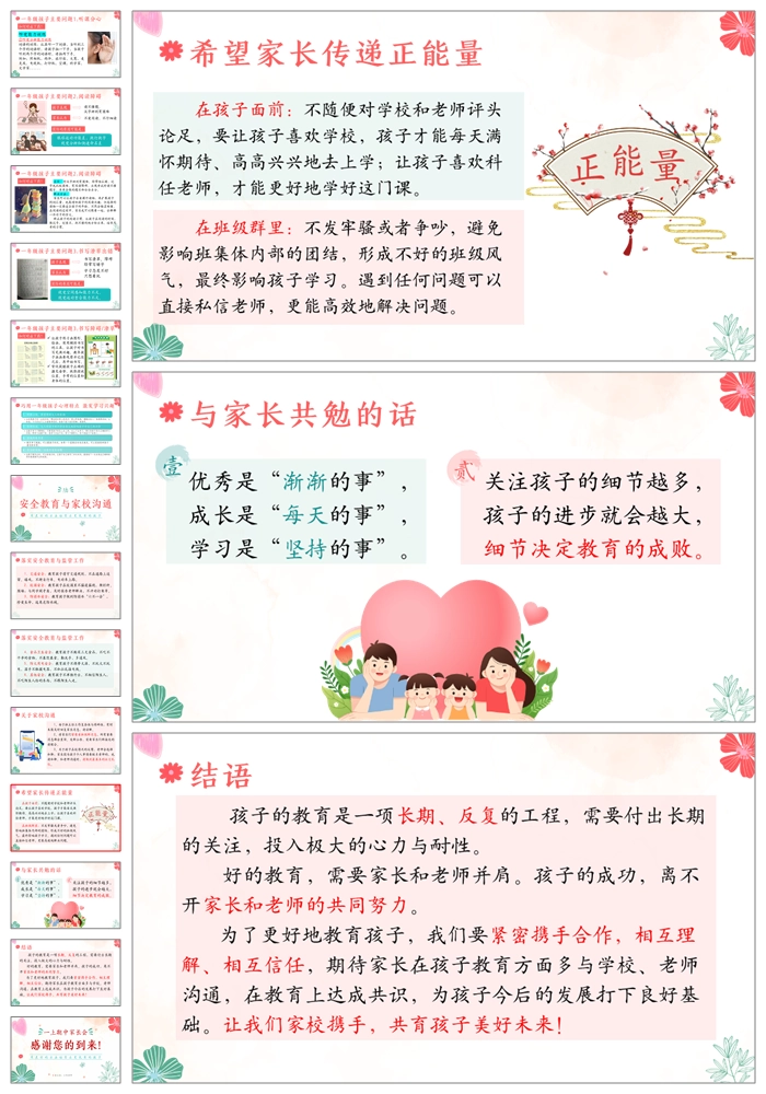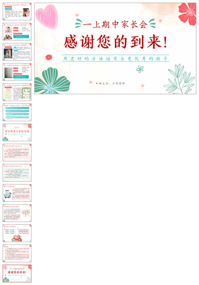 【5106】一上期中家长会《一路同行静待花开》》一年级期中家长会ppt课件+发言稿+暖场视频