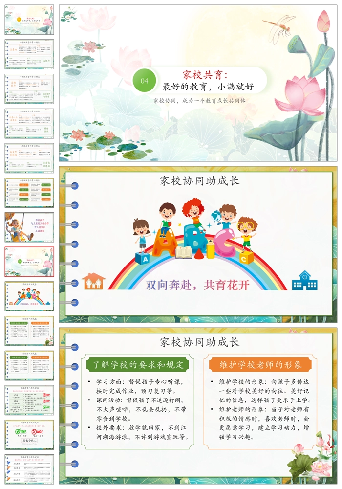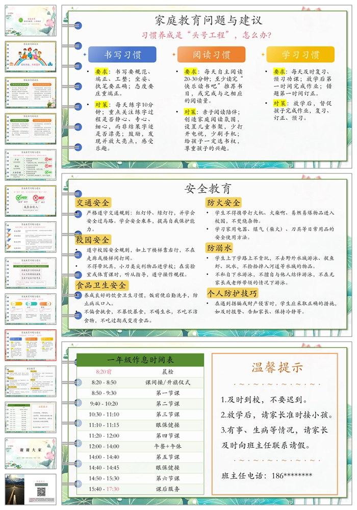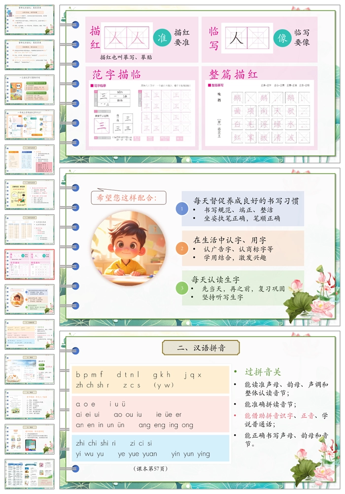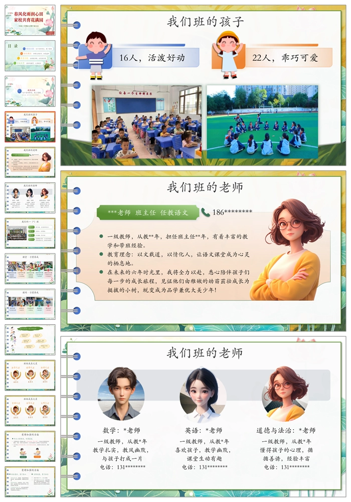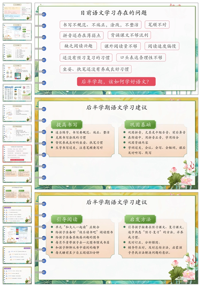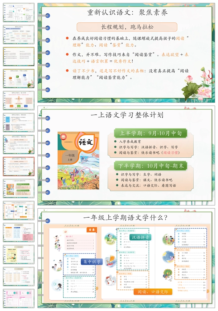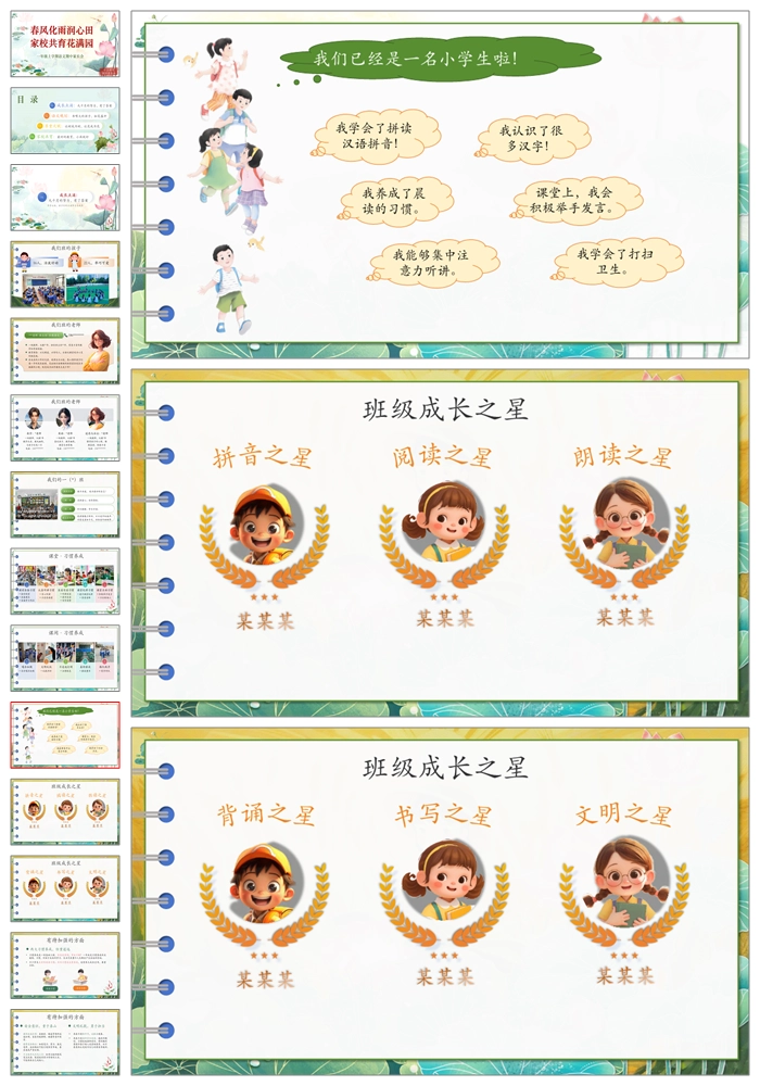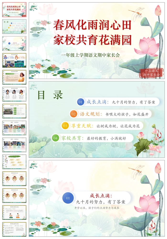 【8192】【一年级家长会】《春风化雨润心田家校共育花满园》一年级上学期期中语文家长会PPT(课件+讲稿)