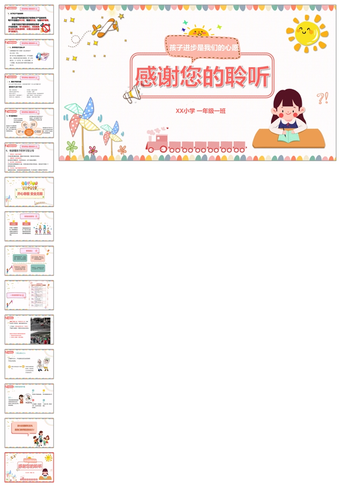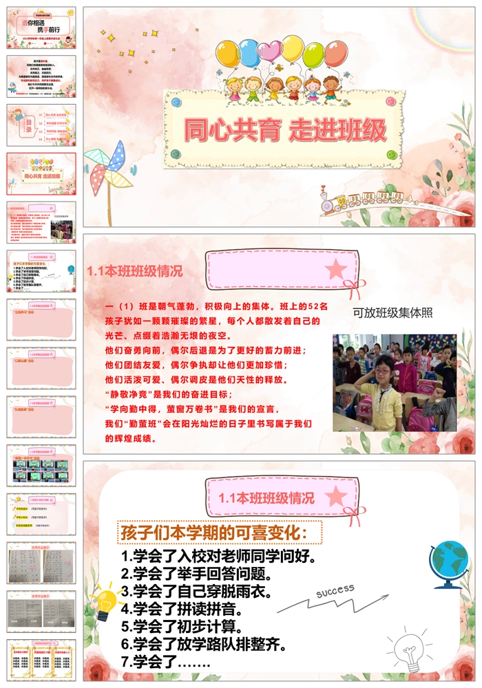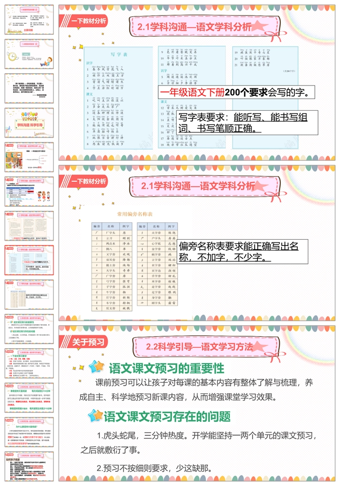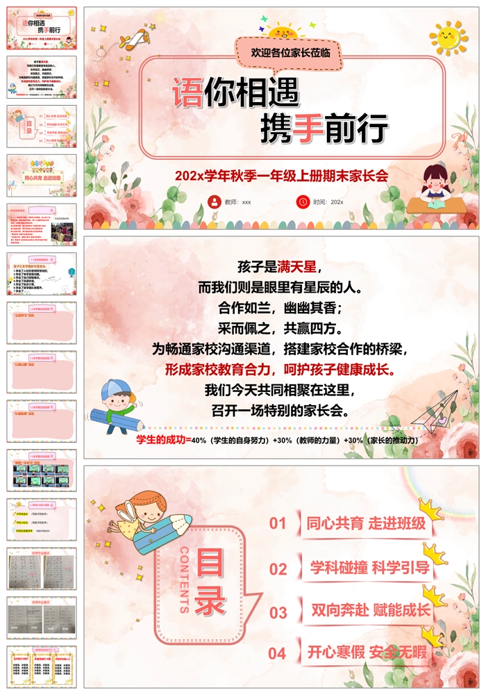 【8215】【一年级家长会】《语你相遇携手前行》一年级上学期期末语文家长会PPT(课件+讲稿)