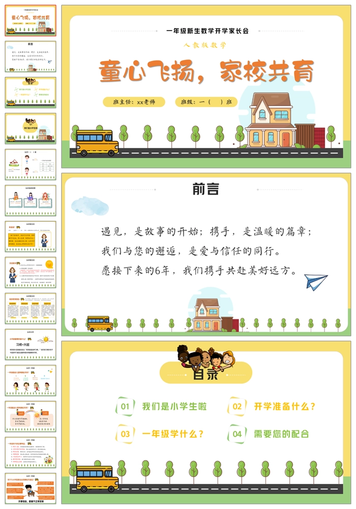 【8459】一年级上学期开学家长会人教版数学《小学我们来啦》ppt课件+发言稿