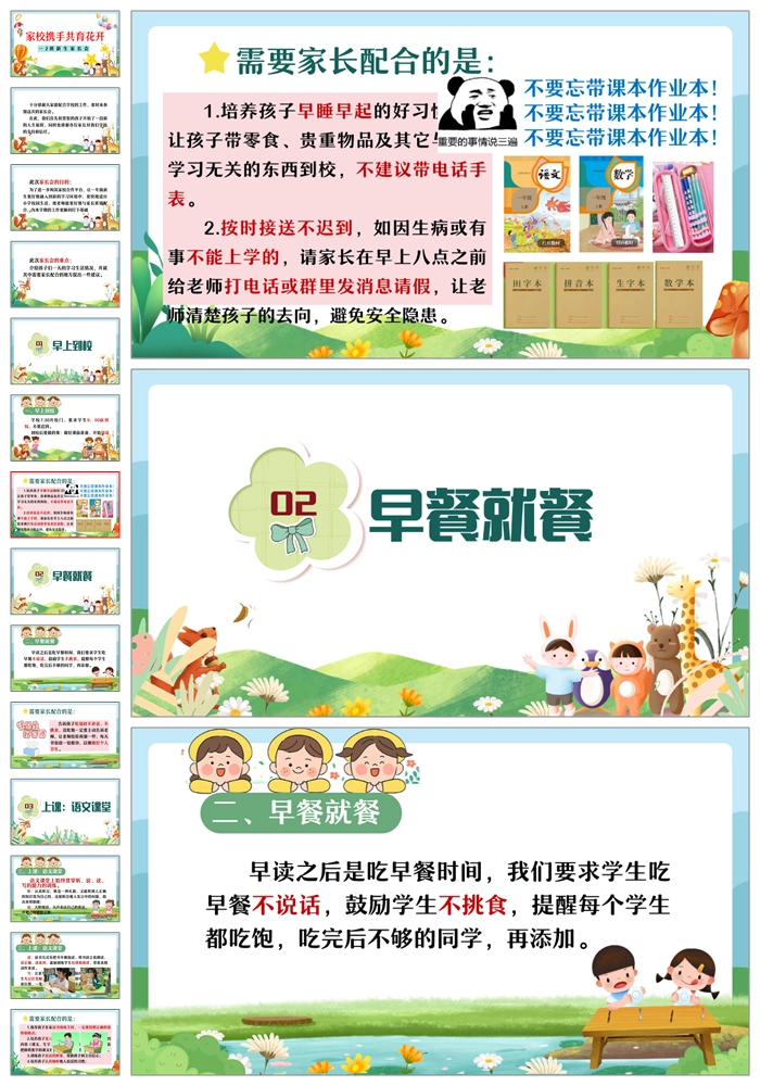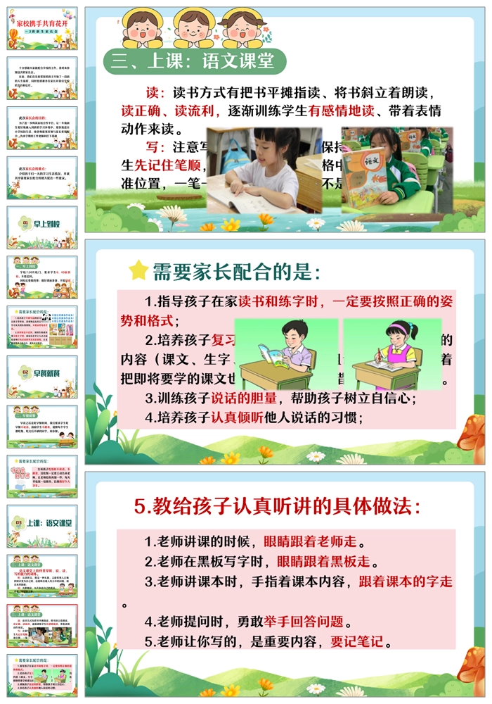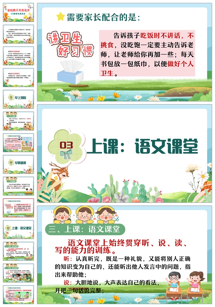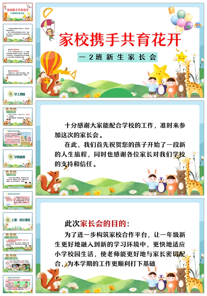 【8469】【一年级家长会】一年级新生入学家长会《家校携手共育花开》PPT课件+发言稿
