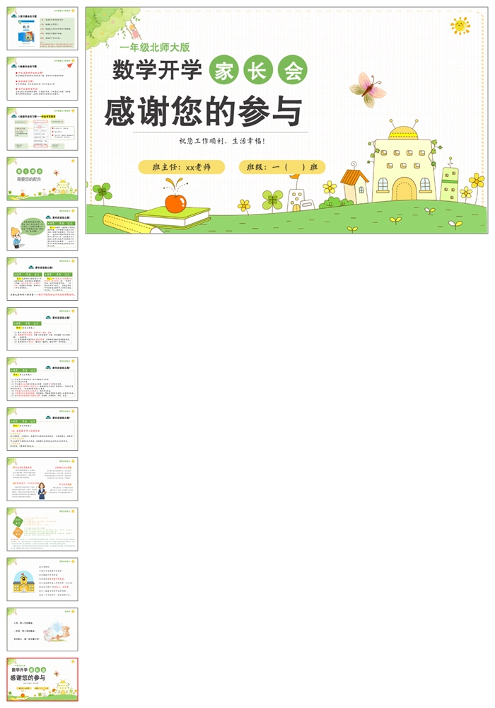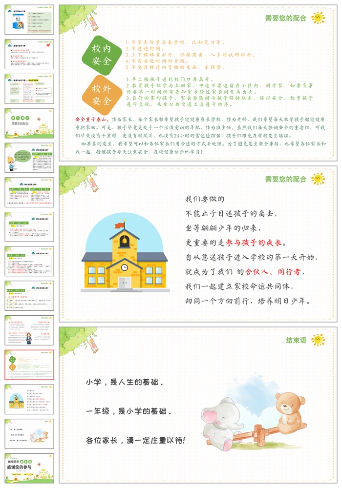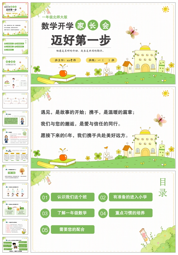 【8496】一年级上学期北师大版数学《迈好第一步》一年级秋季开学第一课家长会ppt课件+发言稿
