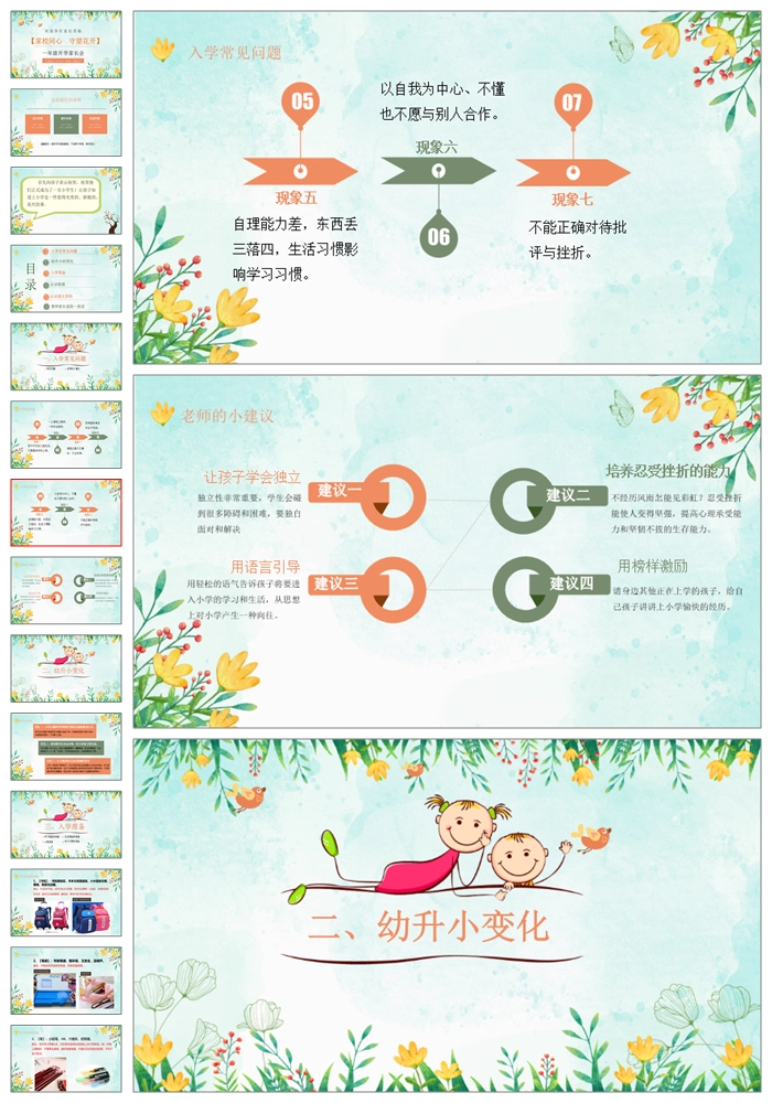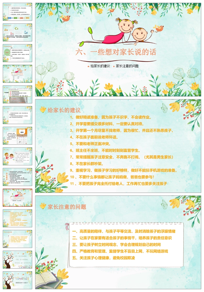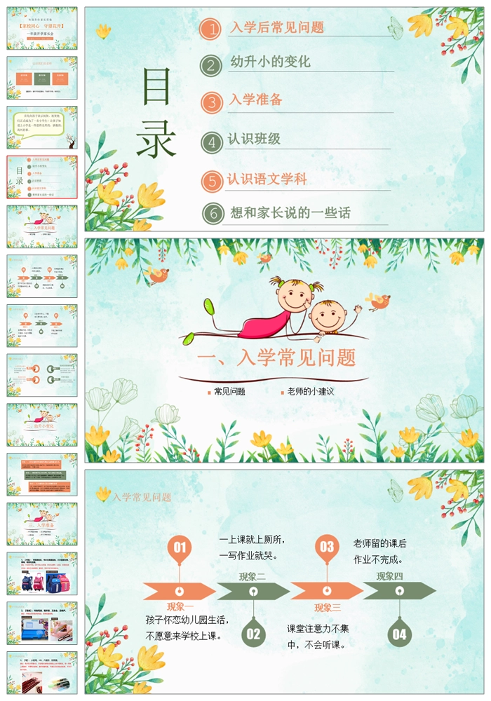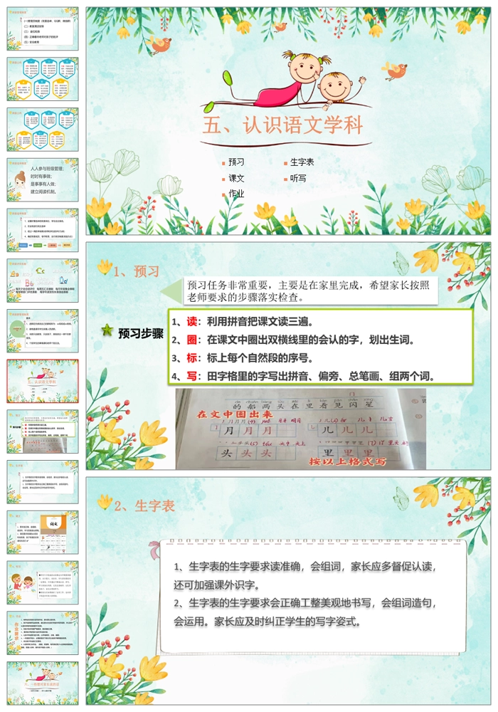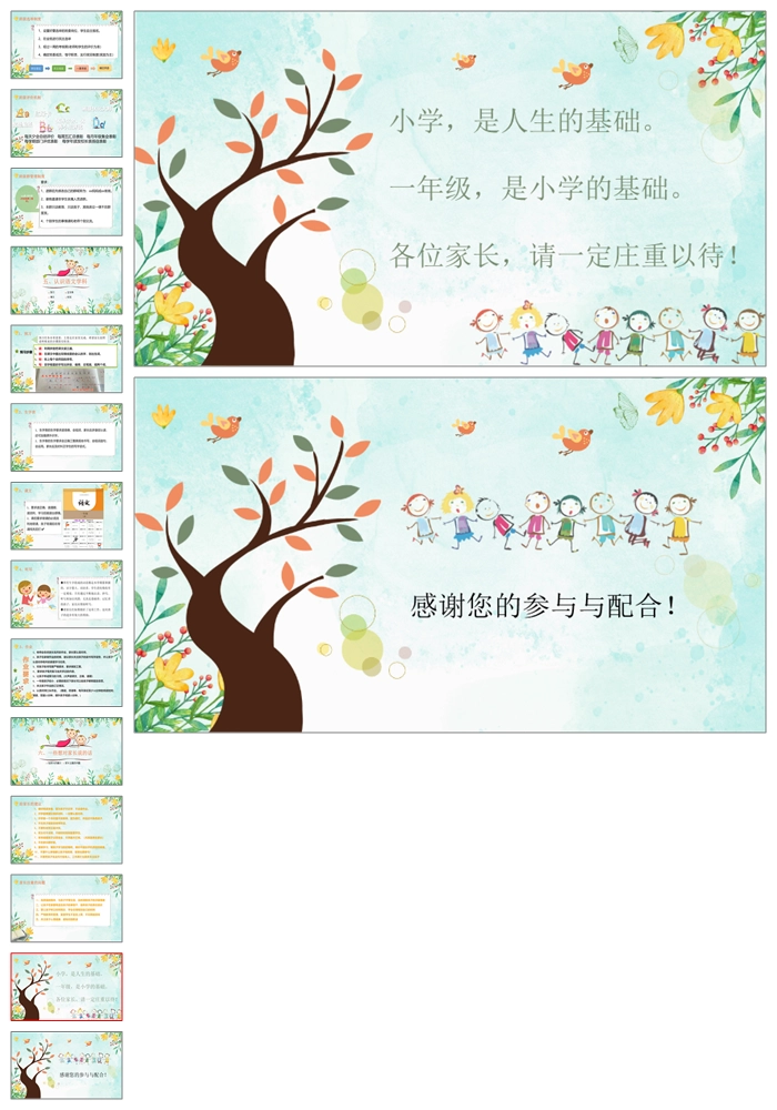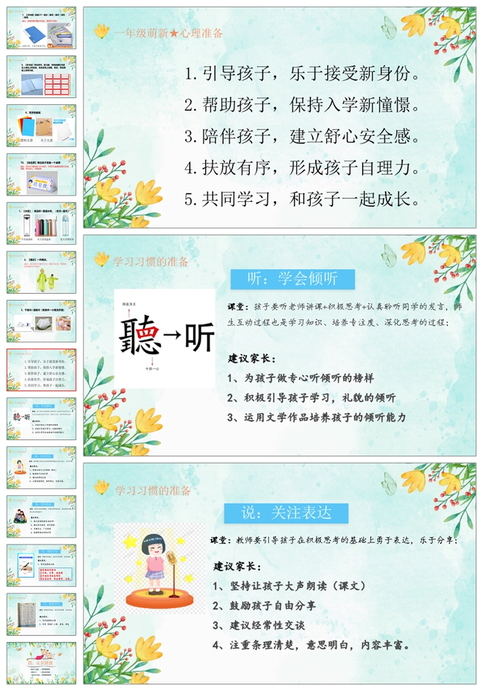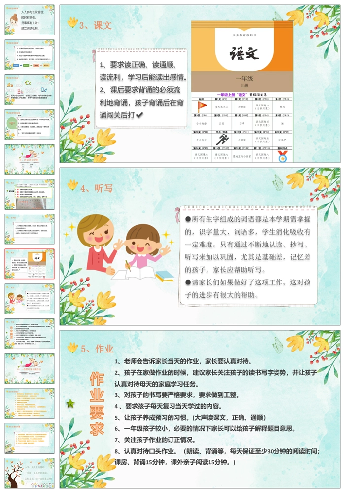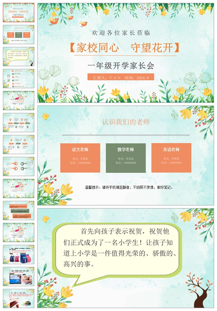 【8499】一年级上学期语文《家校同心 守望花开》一年级秋开学第一课家长会ppt课件+发言稿