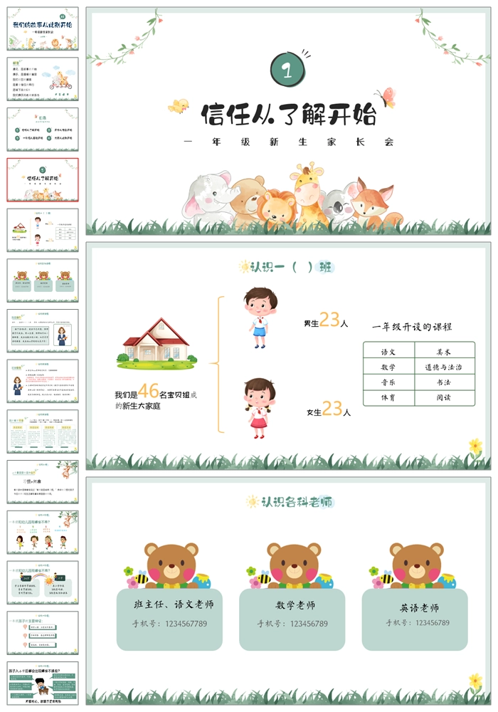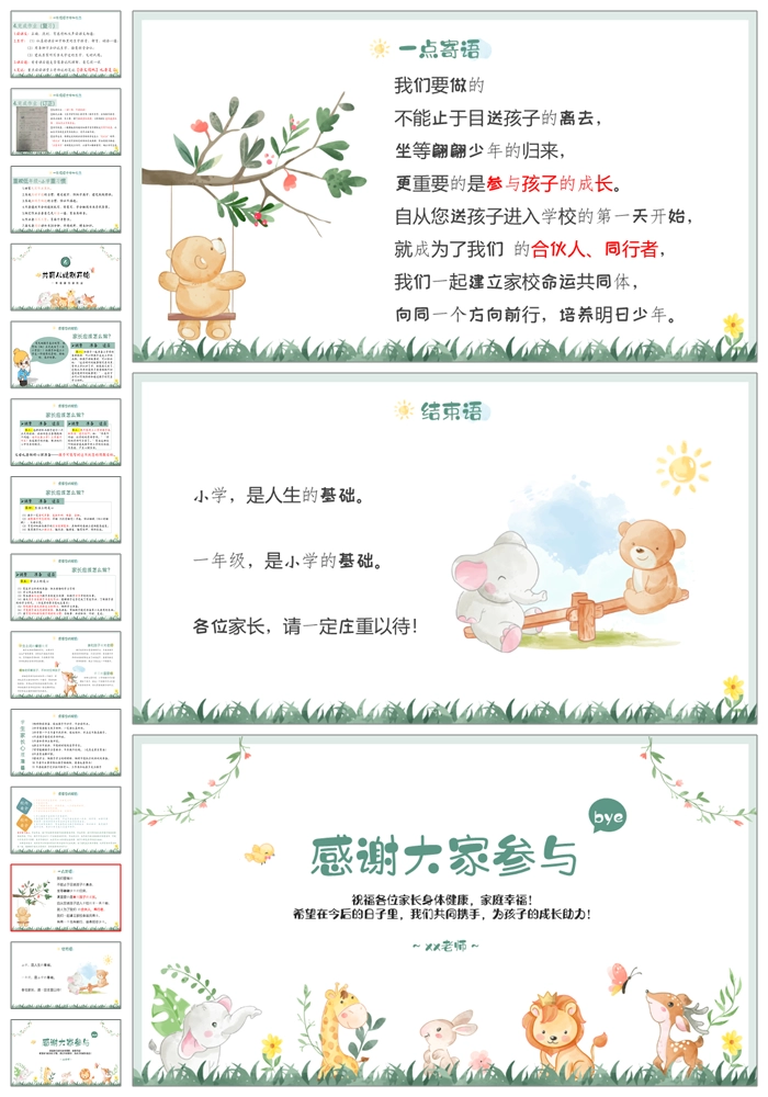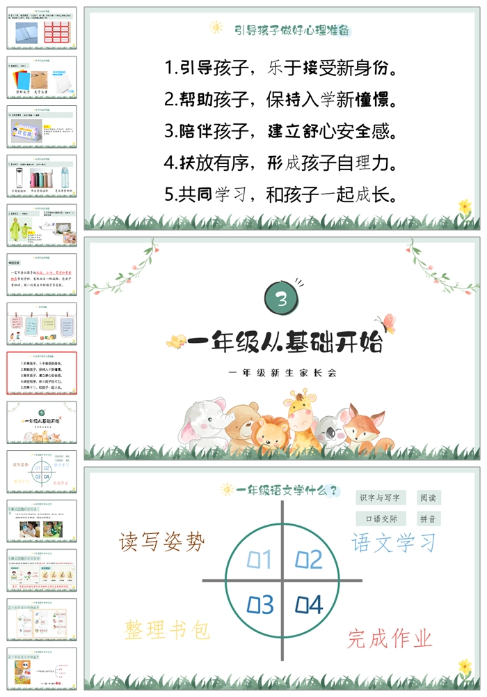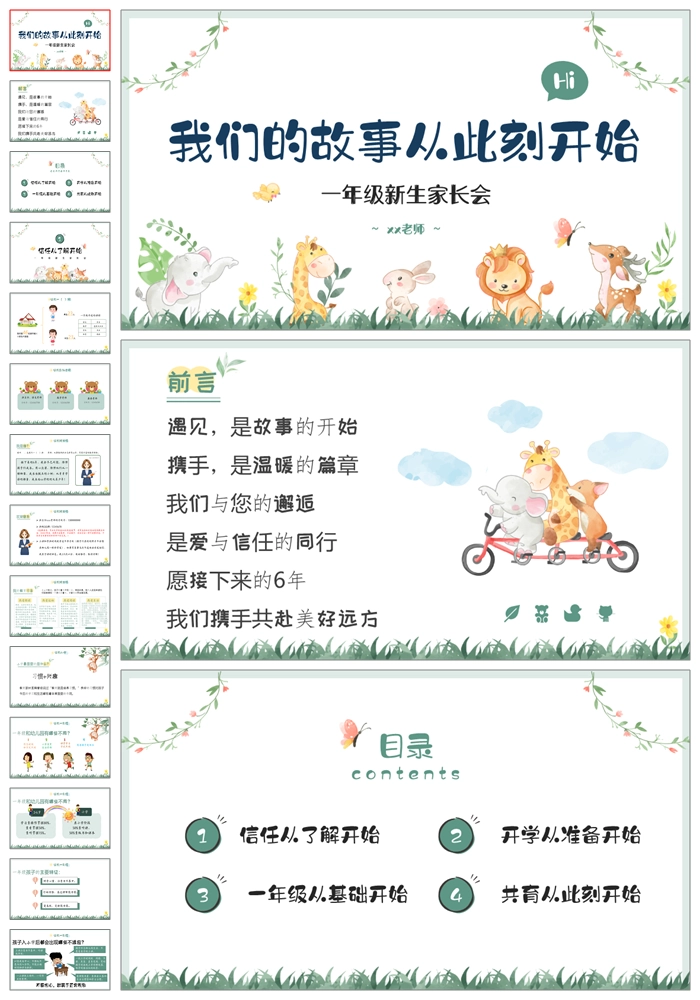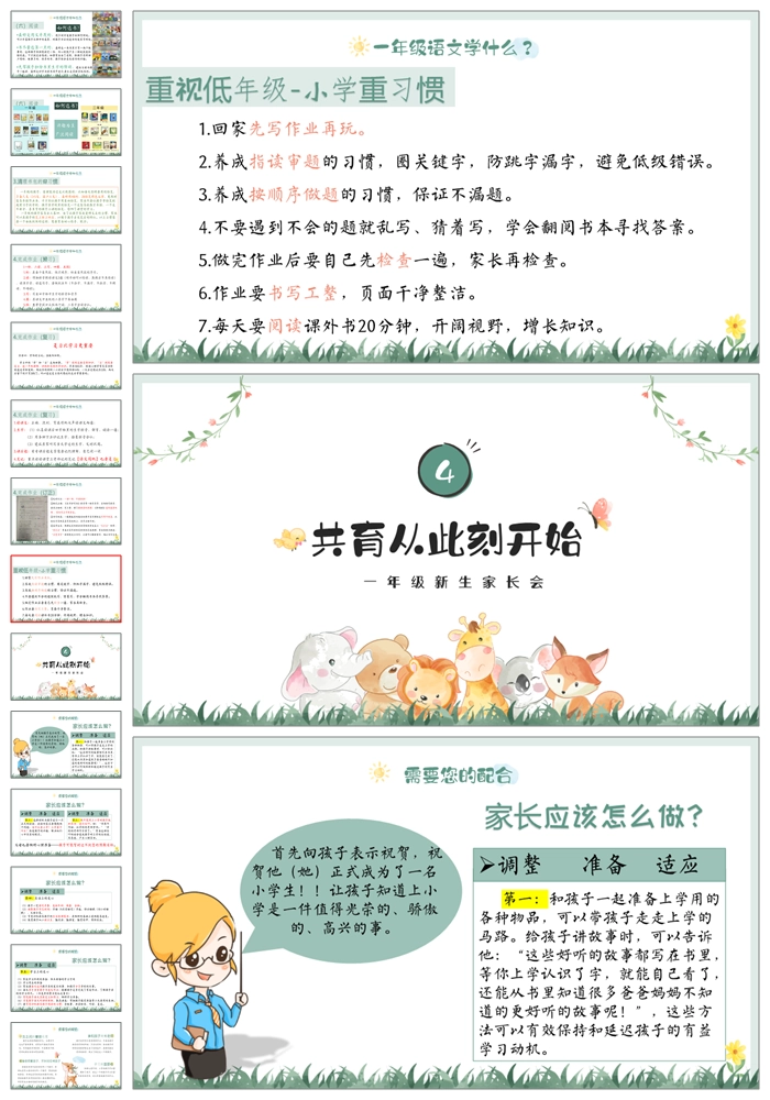 【8500】一年级上学期语文《我们的故事从此刻开始》一年级秋开学第一课家长会ppt课件+发言稿