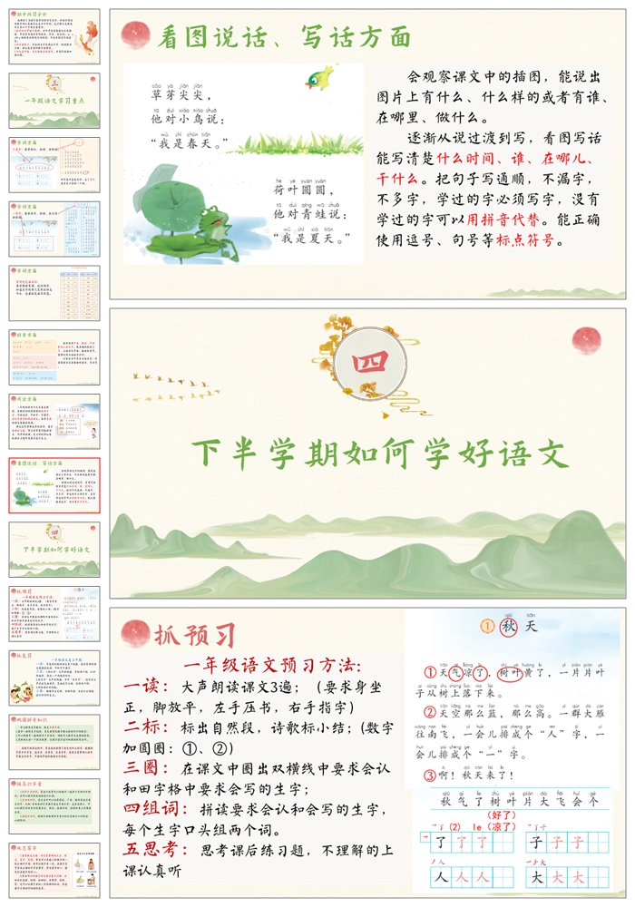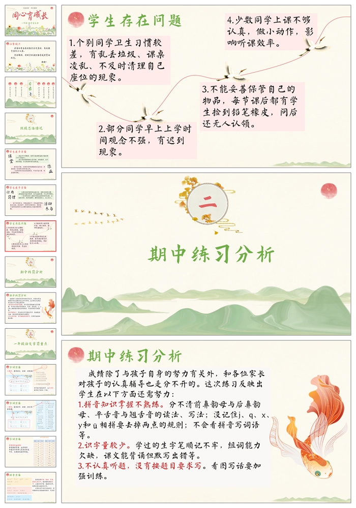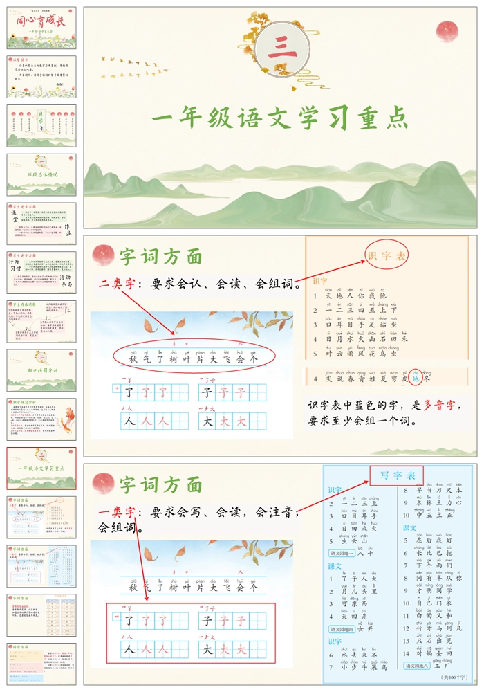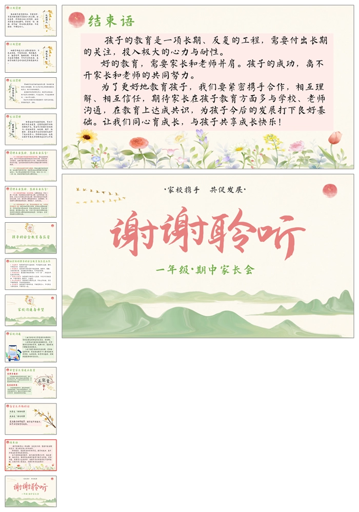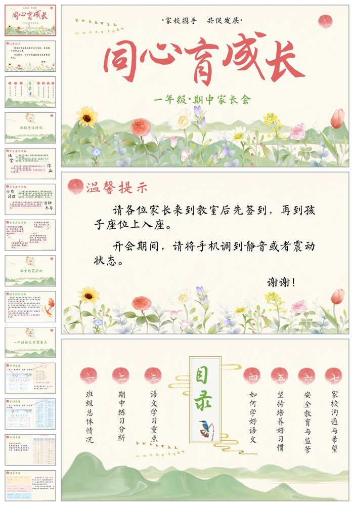 【8587】一年级家长会《同心育成长》一年级第一学期语文期中家长会ppt课件+发言稿