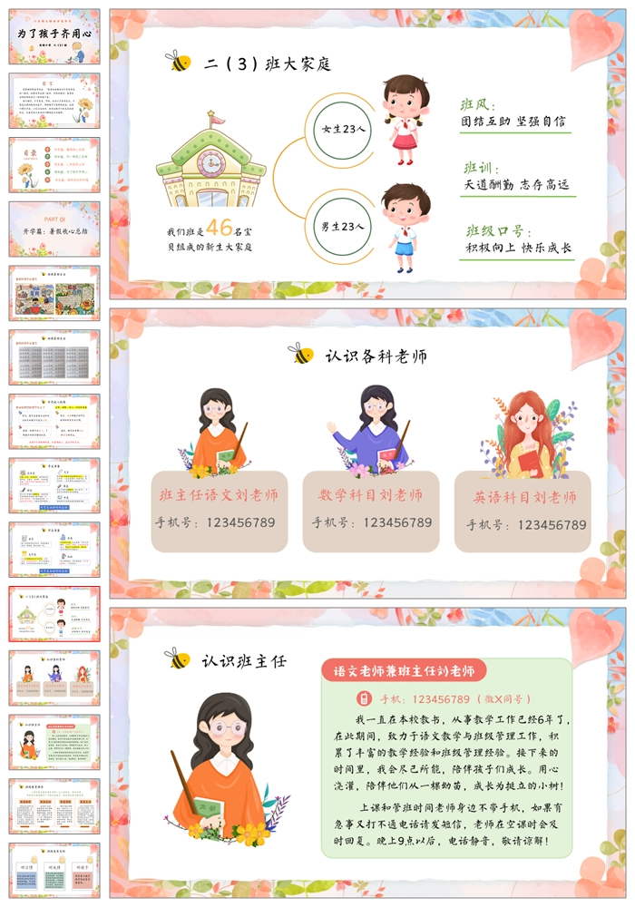 【5068】二上语文开学家长会《为了孩子齐用心》二年级上学期语文开学家长会PPT课件+发言稿+暖场视频