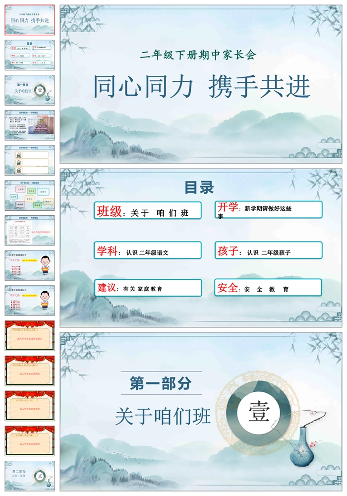 【8011】【二年级家长会】《同心同力携手共进》二年级期中家长会PPT(课件+讲稿)