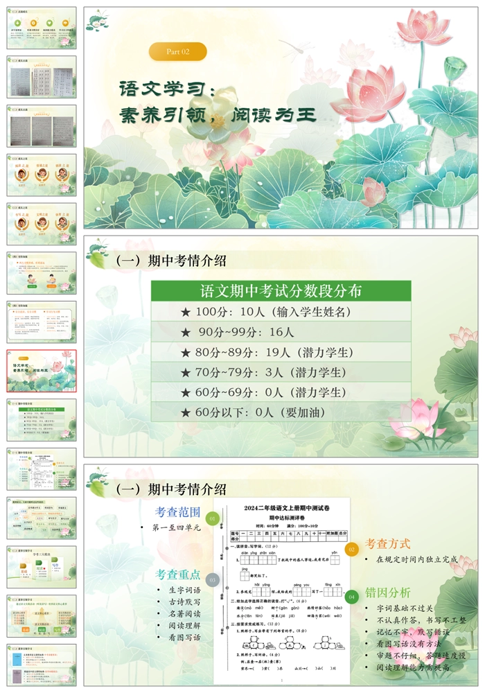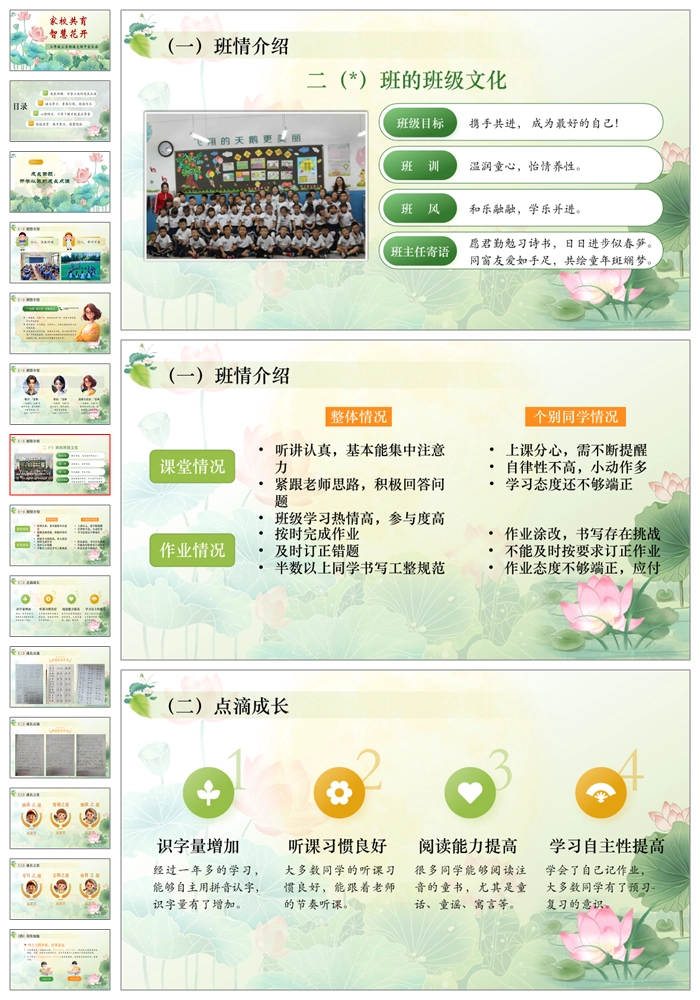 【8199】【二年级家长会】《家校共育智慧花开》二年级上学期语文期中家长会PPT(课件+讲稿)