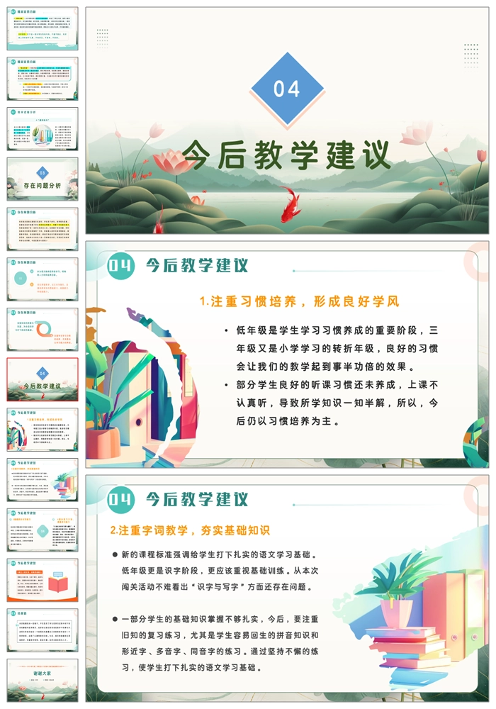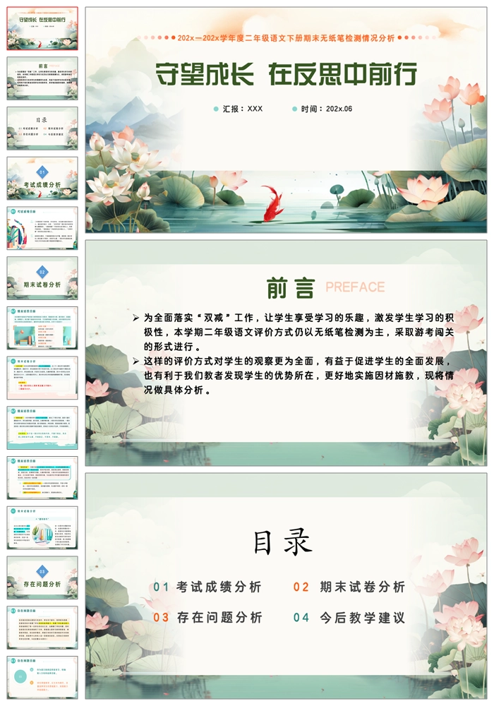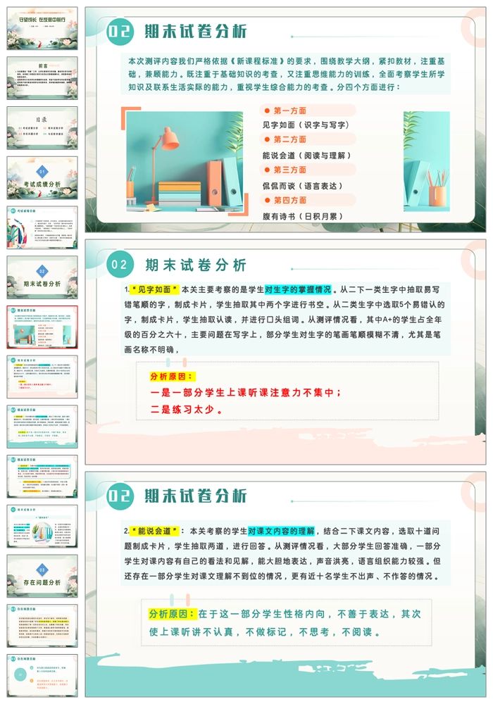 【8401】【二下】【语文】【守望成长 在反思中前行】二年级语文期末质量分析PPT(课件+发言稿)