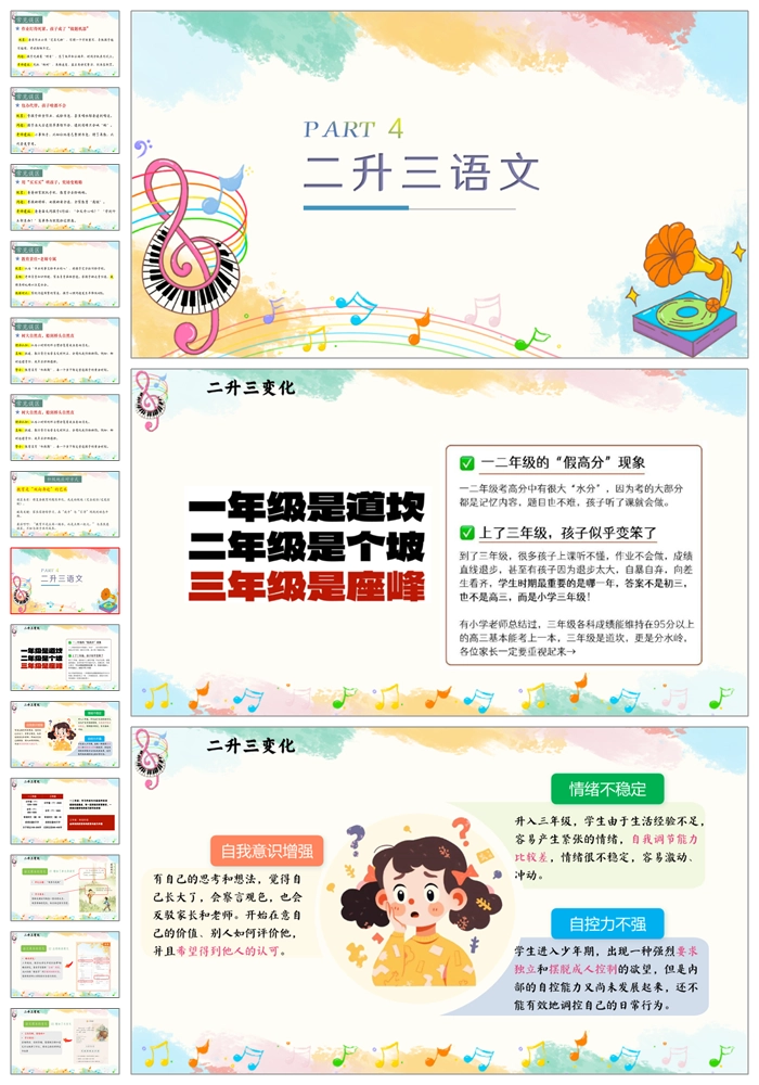 【8428】二年级下(二升三)期末语文家长会《从“焦虑”到“同行”》ppt课件+配套发言稿