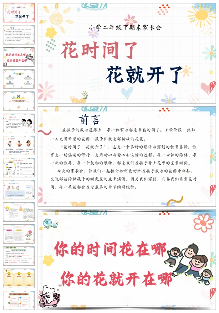 【8429】二年级下语文期末二升三家长会《你的时间花在哪》ppt课件+配套发言稿
