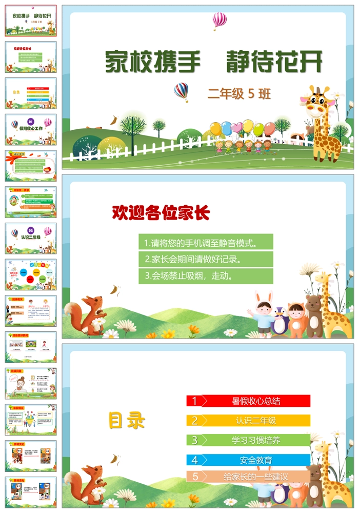 【8468】【二年级家长会】二年级上学期开学家长会《家校携手静待花开》PPT课件+发言稿