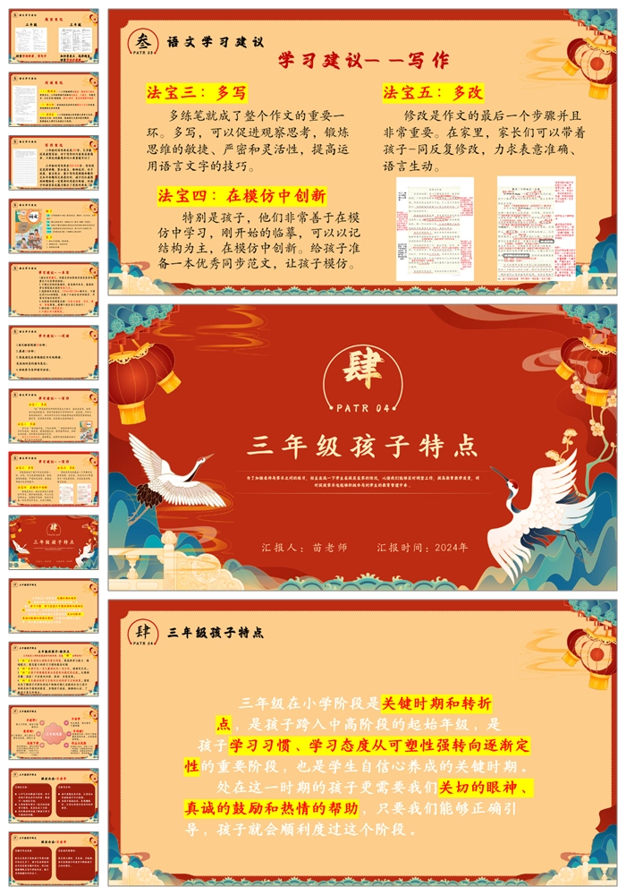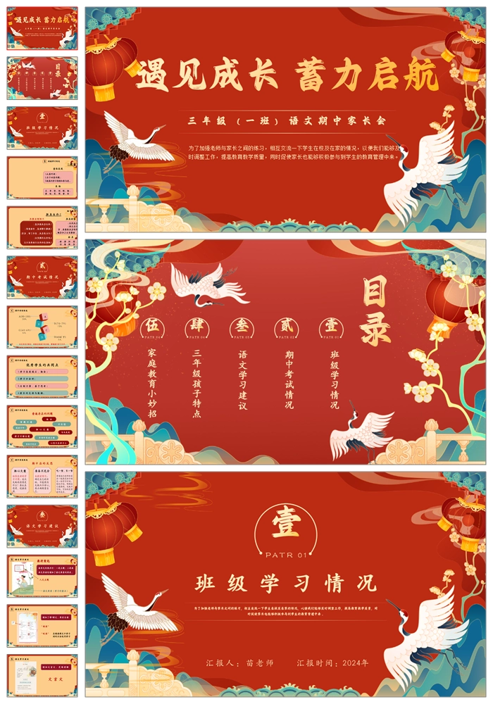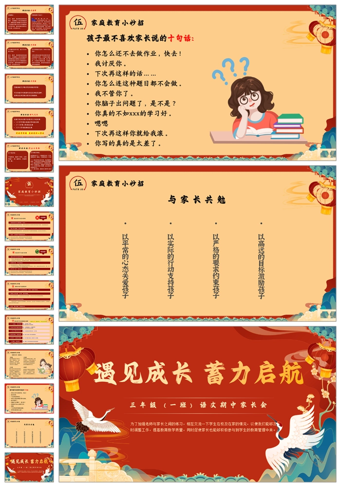 【5100】三上语文期中家长会《遇见成长蓄力启航》三年级上学期语文期中家长会ppt课件+发言稿+暖场视频