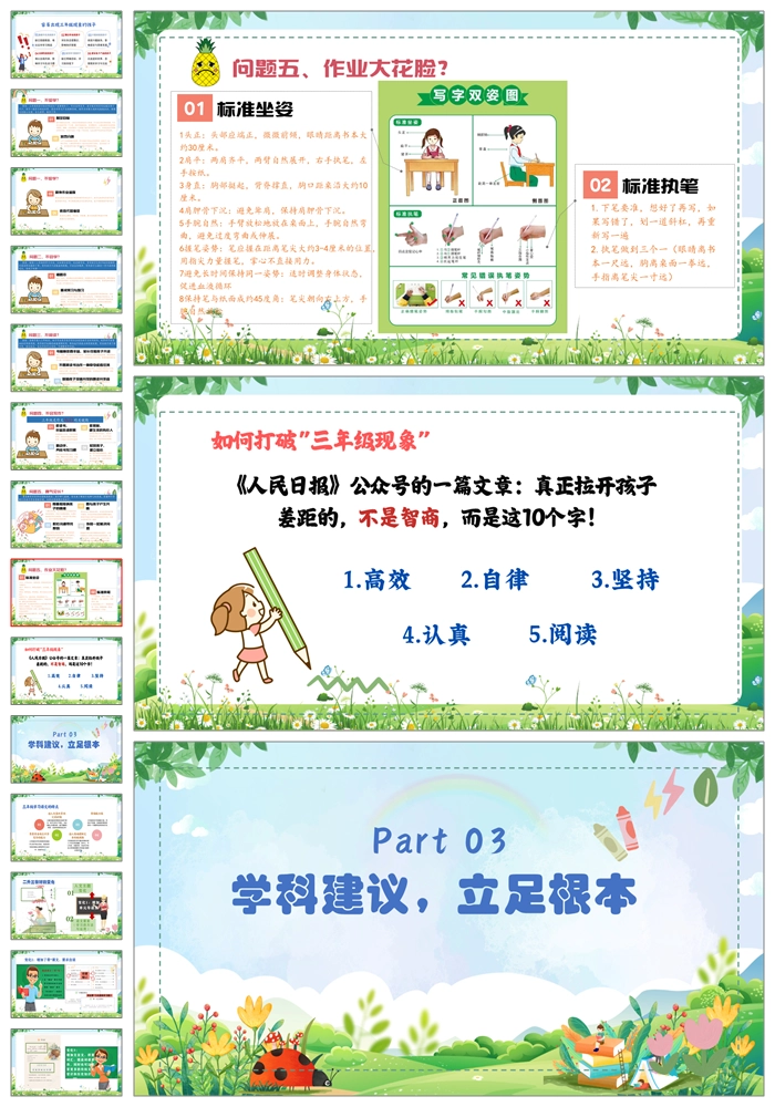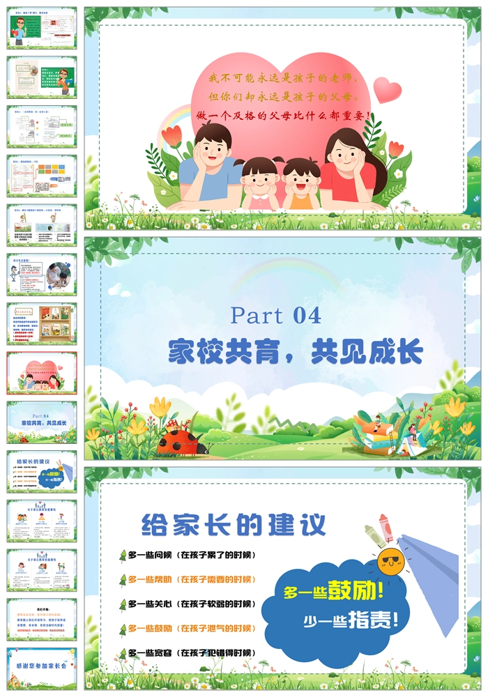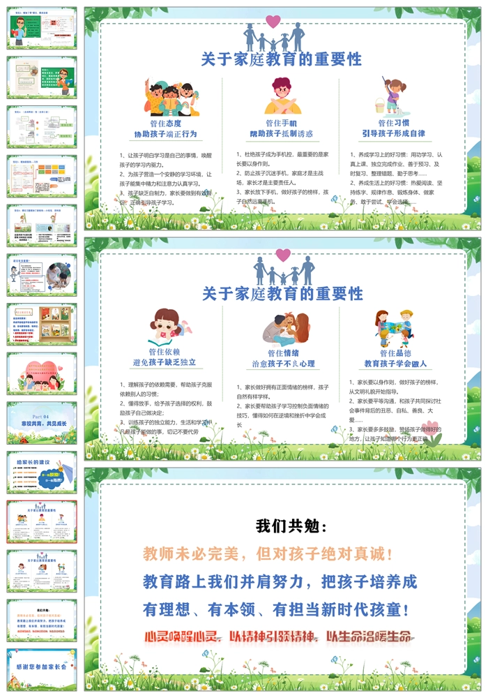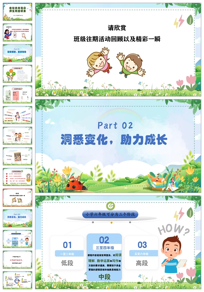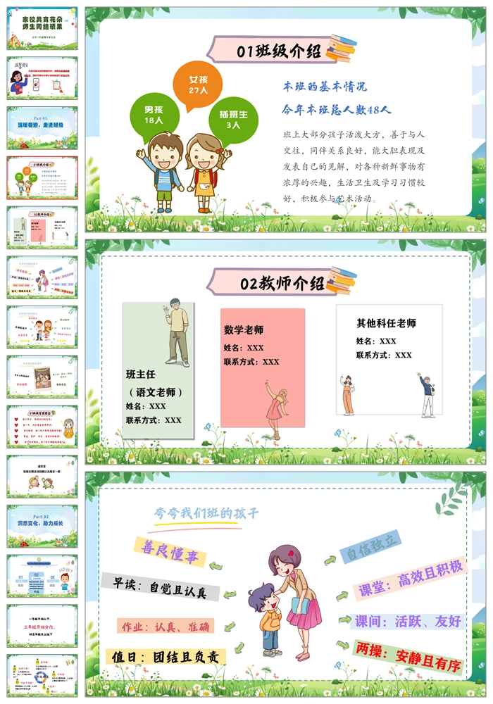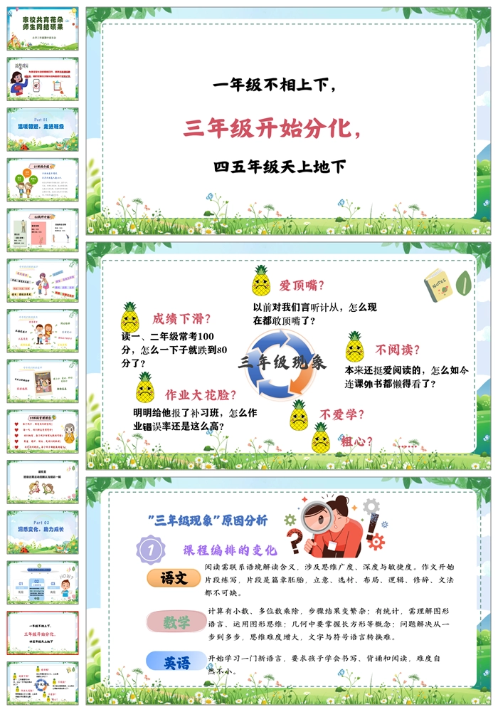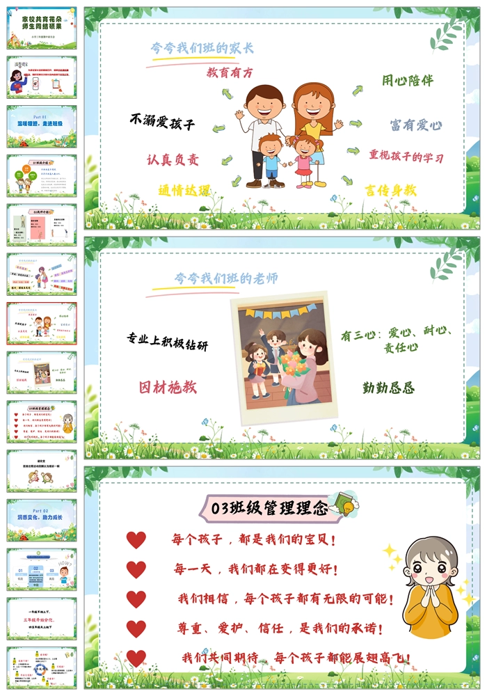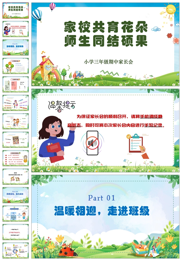 【8279】【三年级家长会】《家校共育花朵师生同结硕果》小学三年级期中家长会PPT(课件+发言稿+暖场视频)