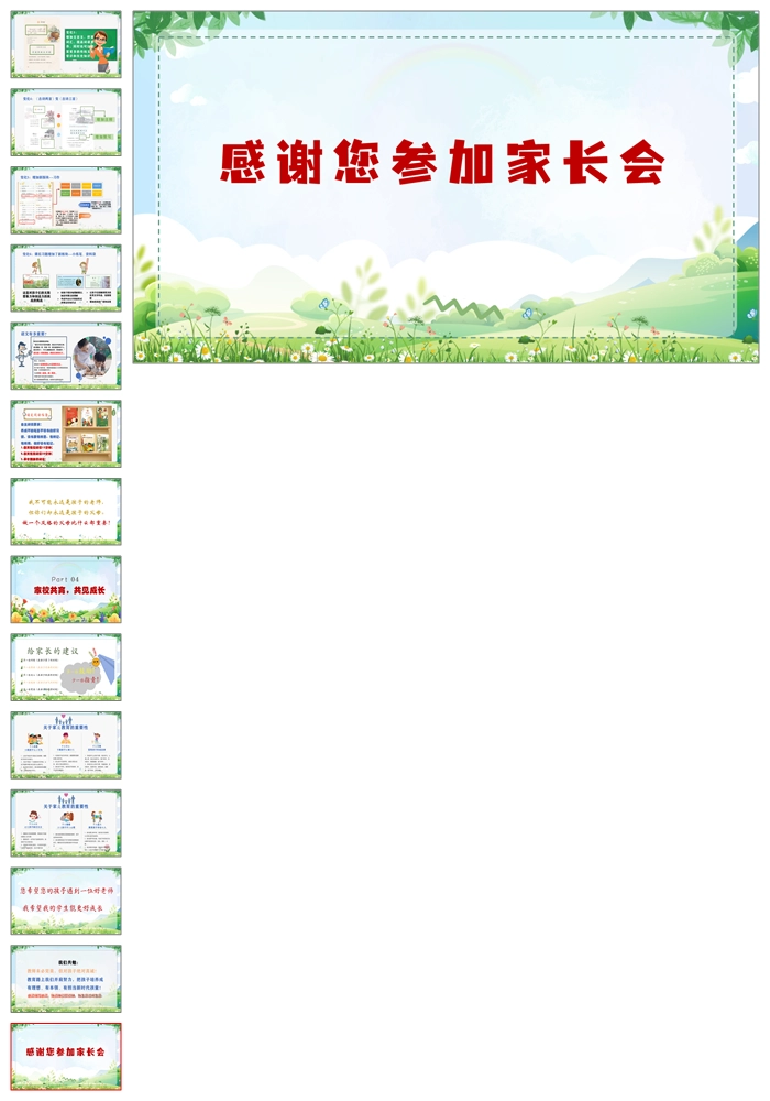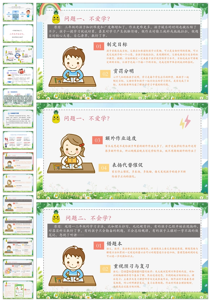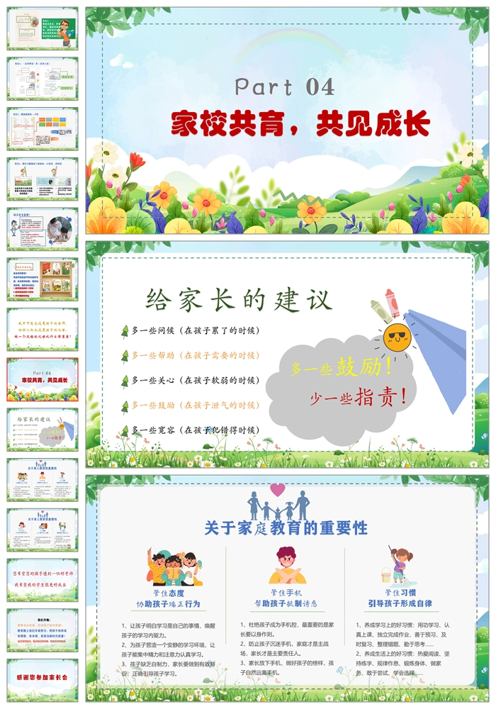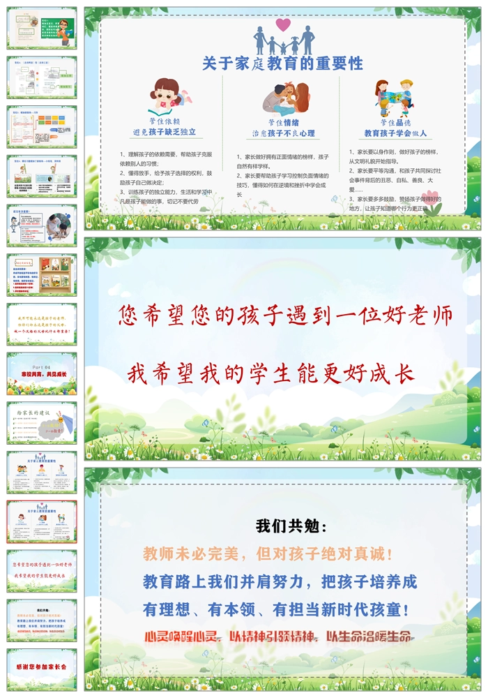 【8281】【三年级家长会】《家校共育幼苗师生同创未来》小学三年级期中家长会PPT(课件+发言稿+暖场视频)