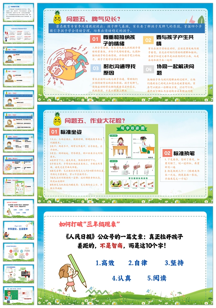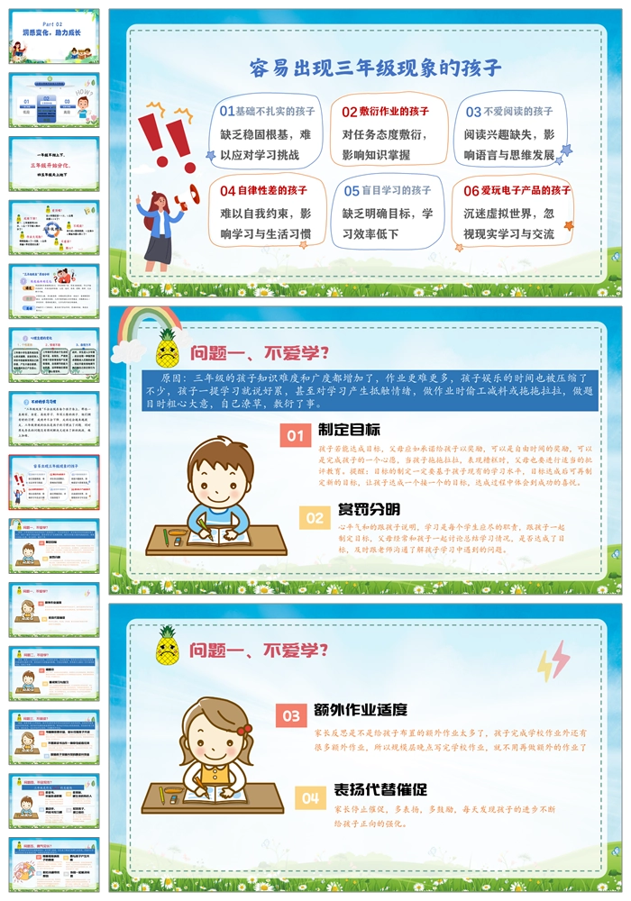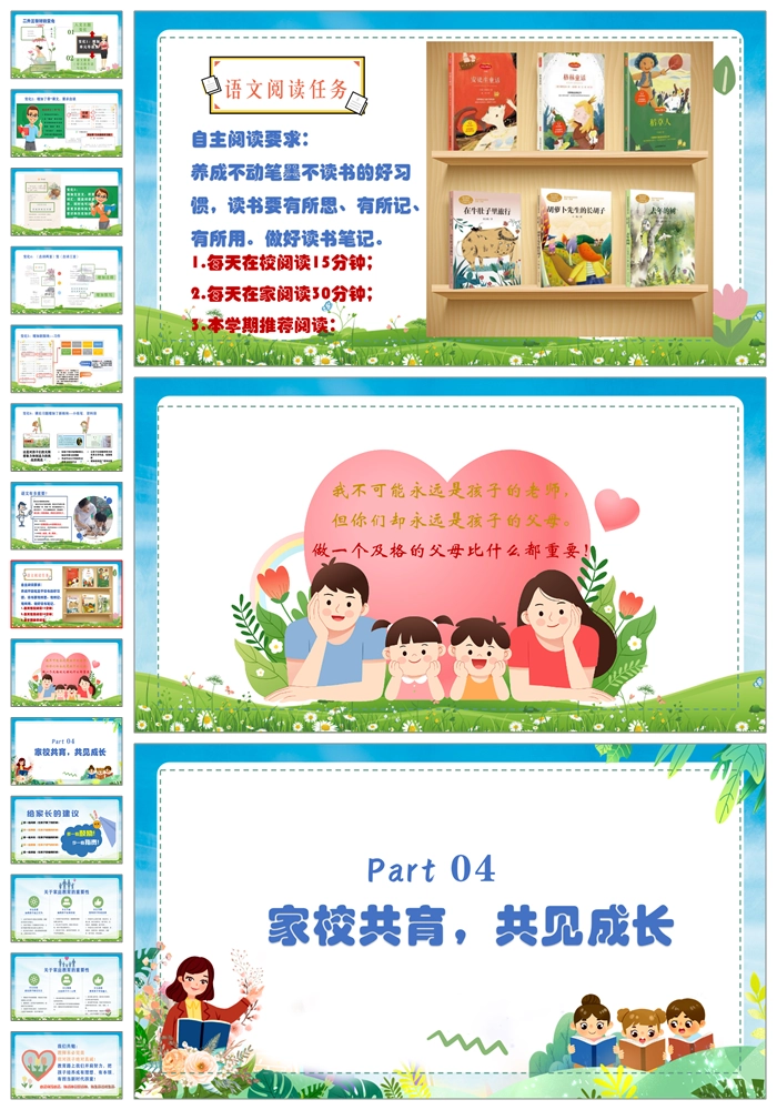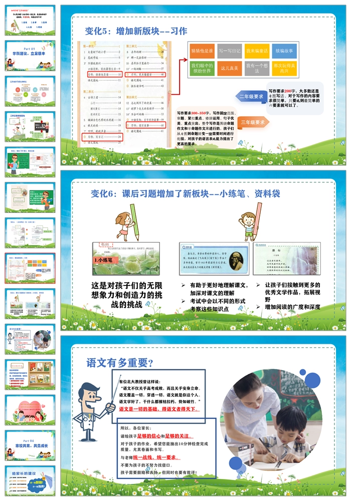 【8283】【三年级家长会】《家校同心育桃李师生共进谱华章》小学三年级期中家长会PPT(课件+发言稿+暖场视频)