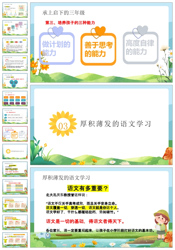 【8302】【三年级家长会】三年级下学期语文开学家长会《与孩子同行共话成长路》PPT(课件+发言稿+暖场视频)