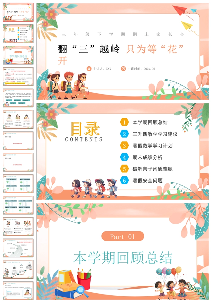 【8387】【三下家长会】【数学】《翻“三”越岭 只为等“花”开》三年级下学期数学期末家长会ppt(课件+发言稿)