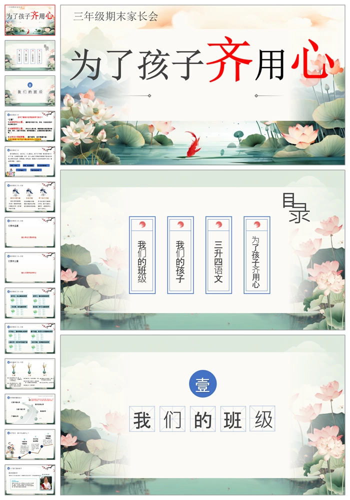 【8390】【三下家长会】【语文】《为了孩子齐用心》三年级下学期语文期末家长会ppt(课件+发言稿)