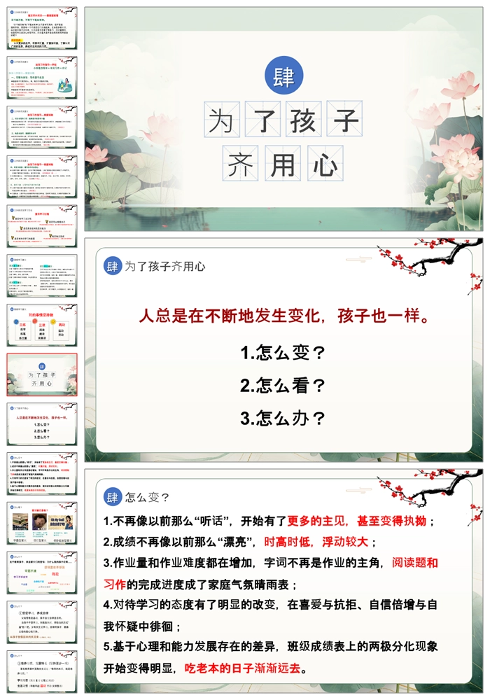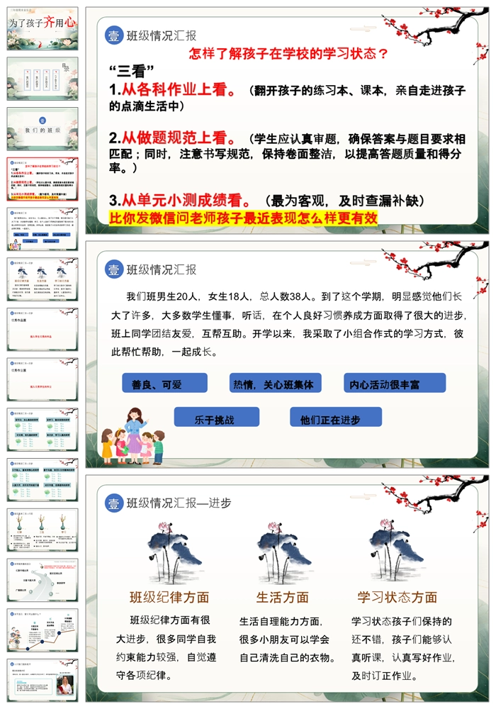 首页 三年级家长会 【8390】【三下家长会】【语文】《为了孩子齐用心》三年级下学期语文期末家长会ppt(课件+发言稿)