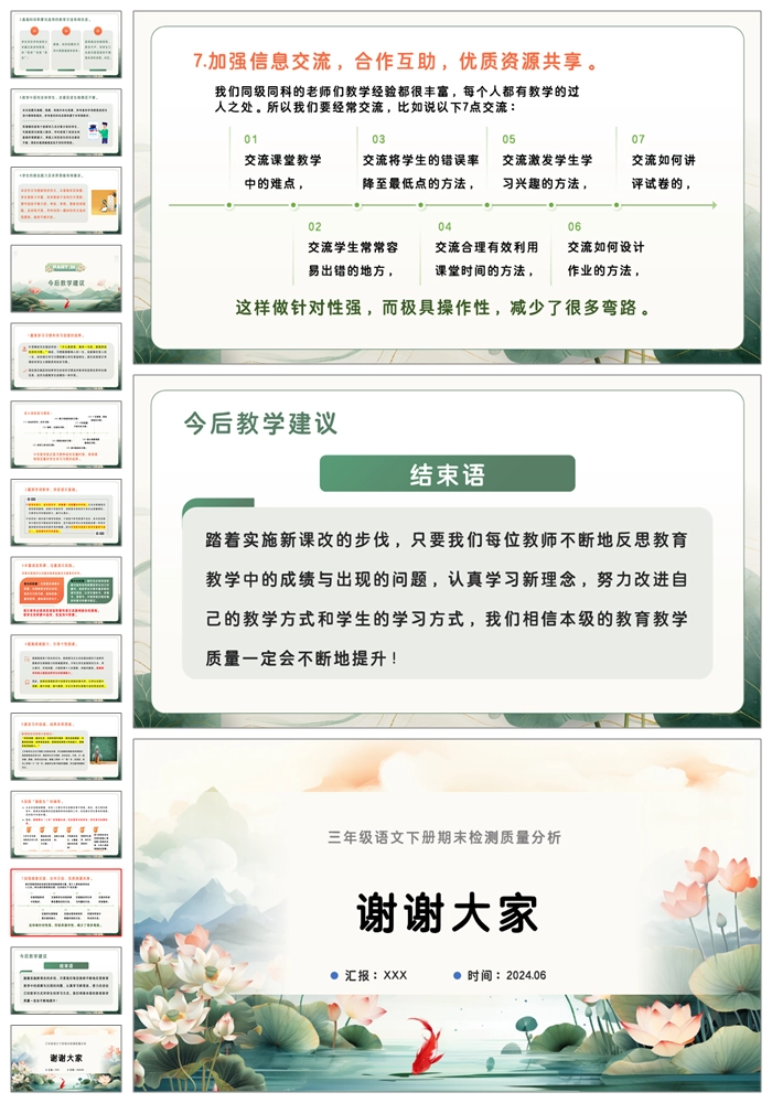 【8403】【三下】【语文】【反思共成长 合力再起航】三年级语文期末质量分析PPT(课件+发言稿)