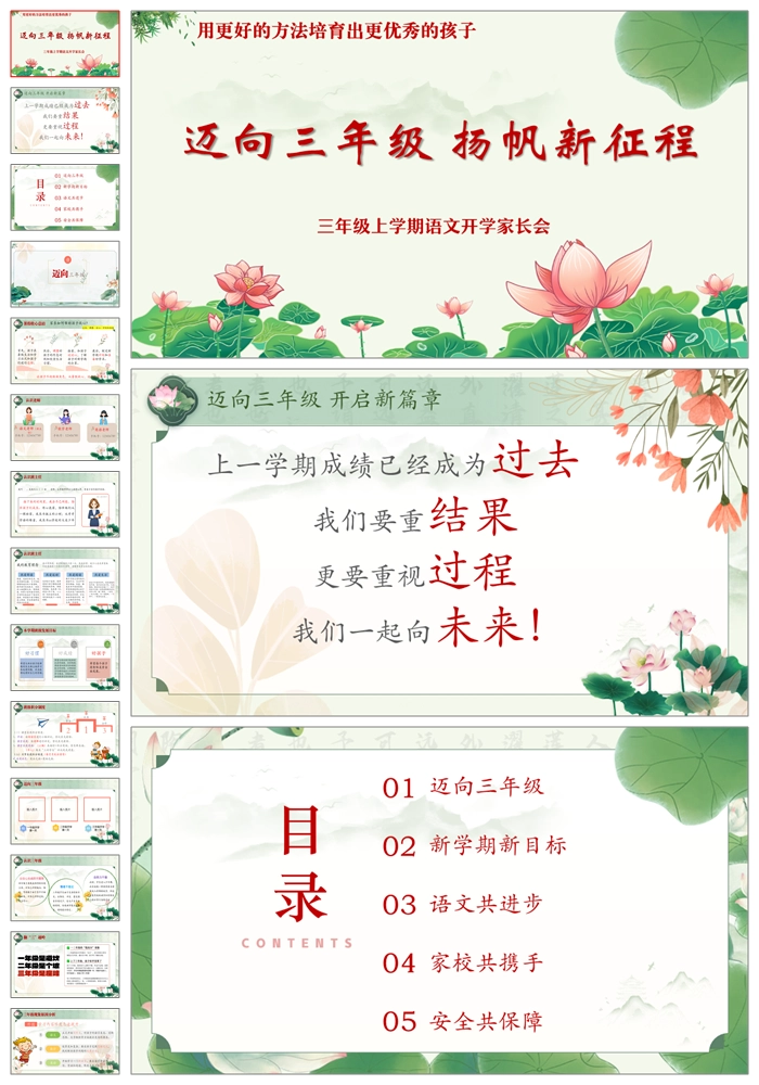 【8481】【三年级家长会】《迈向三年级扬帆新征程》三年级上学期开学家长会PPT课件(课件+视频+发言稿)