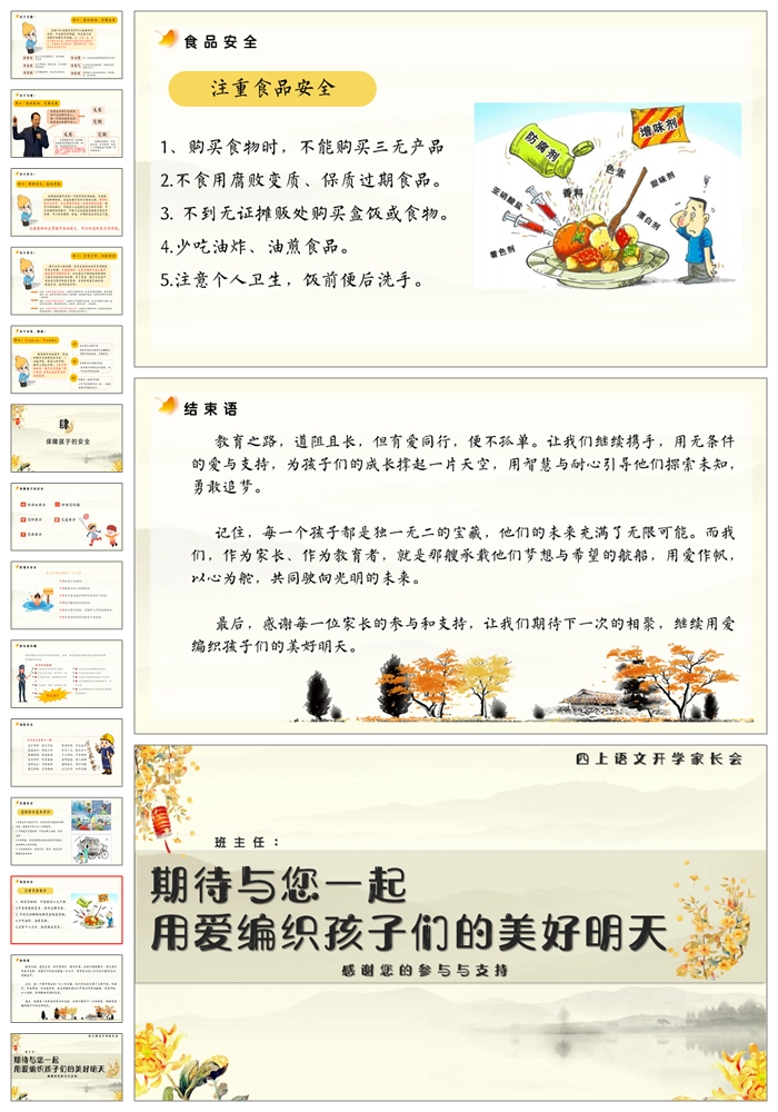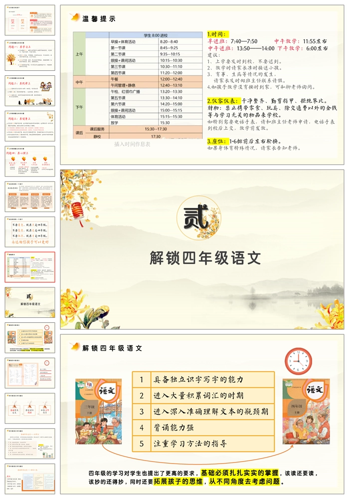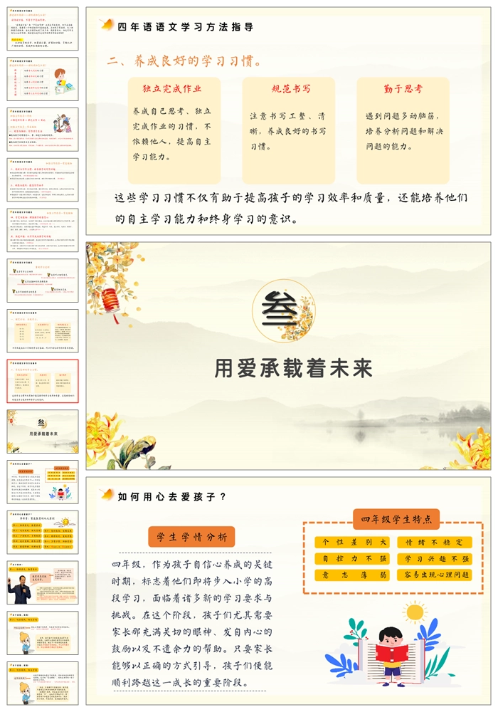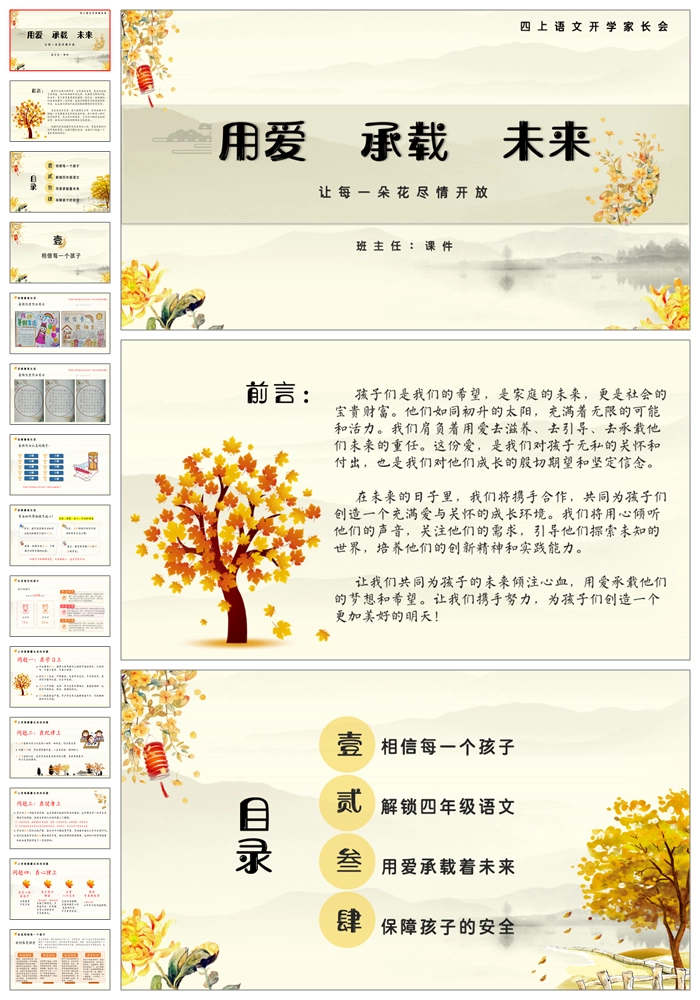 【5121】四上语文开学家长会《用爱承载 未来》四年级语文开学家长会ppt课件+发言稿