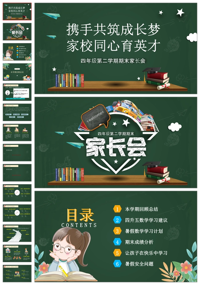 首页 四年级家长会 【8091】【四下家长会】【携手共筑成长梦,家校同心育英才】四年级下学期数学期末家长会PPT(课件+发言稿)