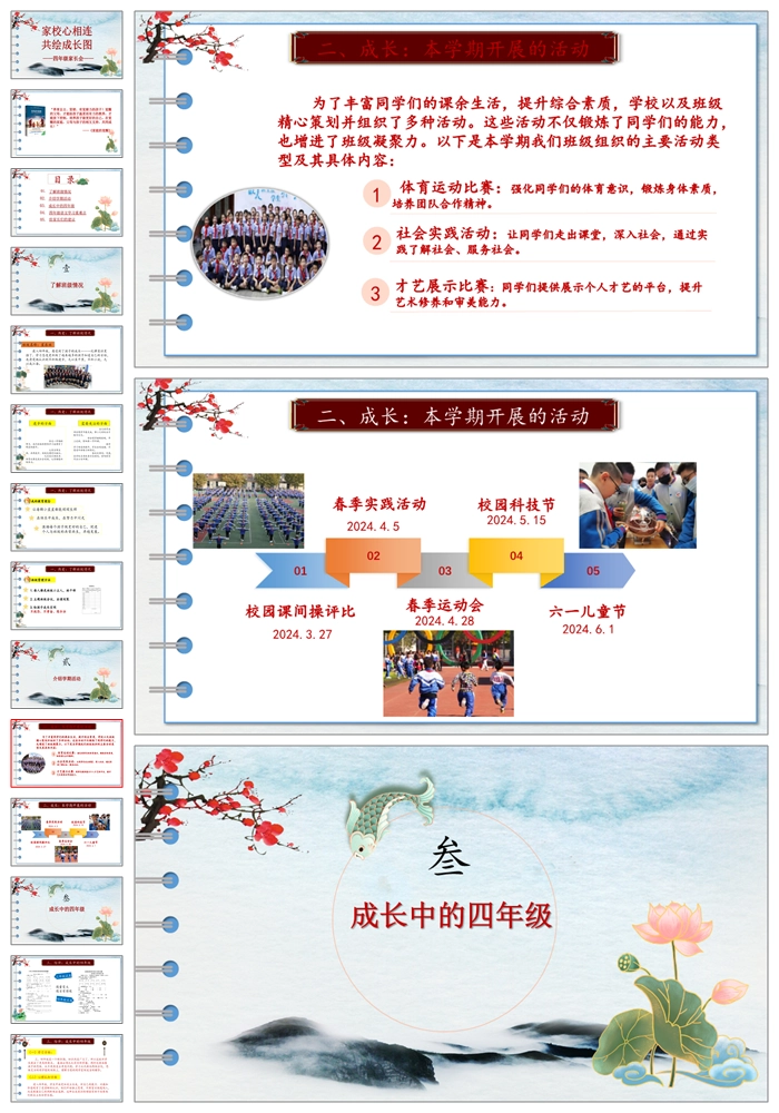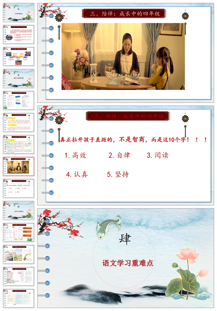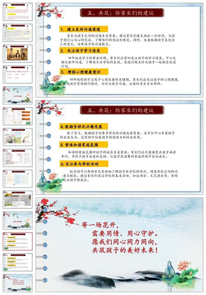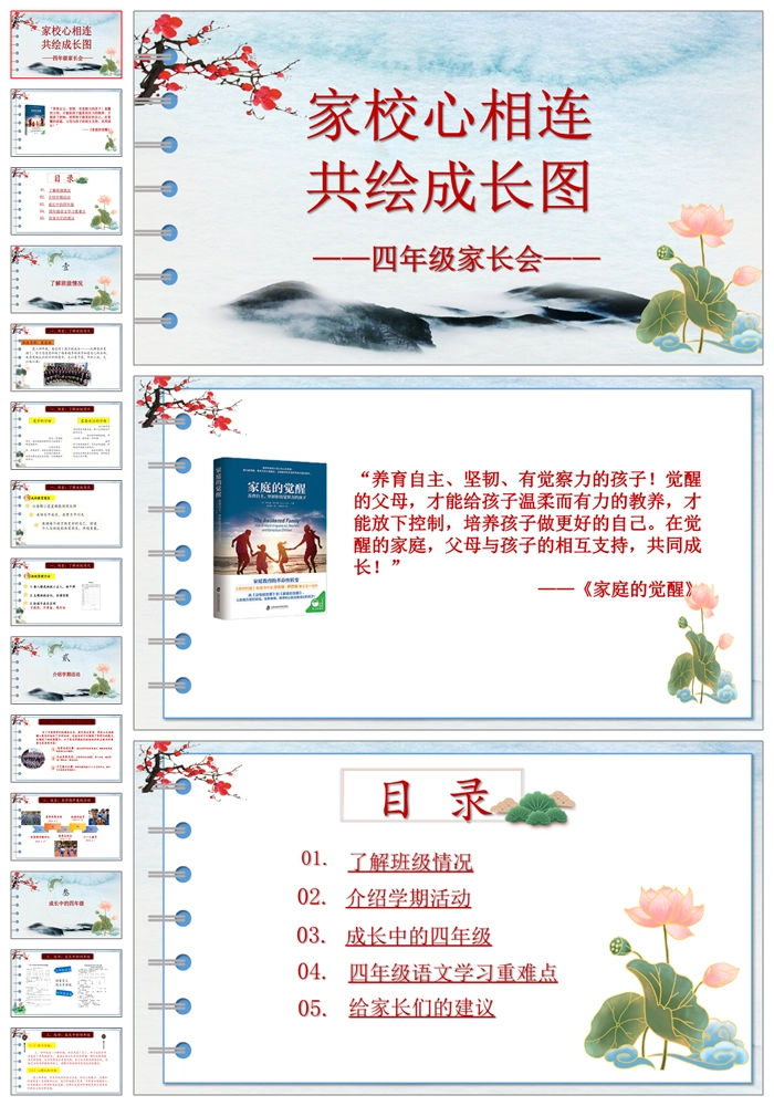 【8182】【四年级家长会】《家校心相连共绘成长图》四年级下学期家长会PPT(课件+讲稿)