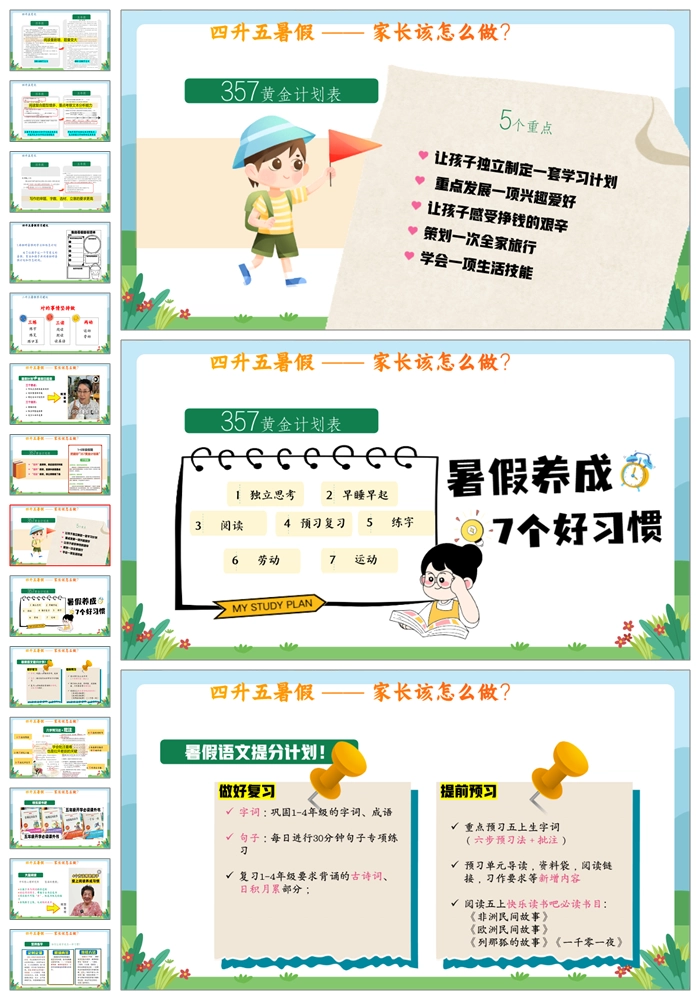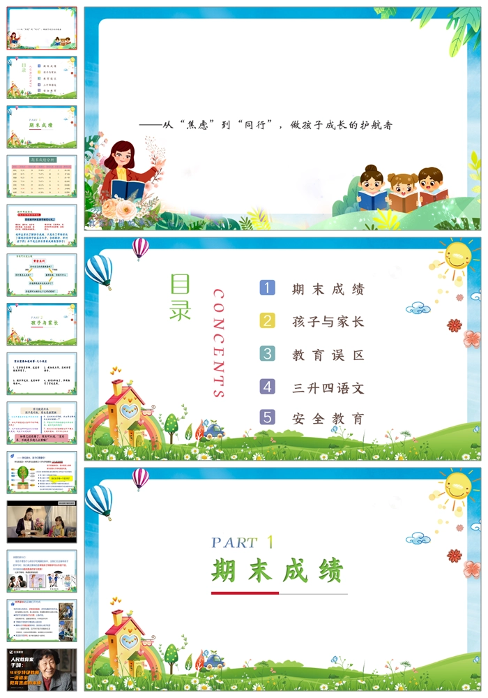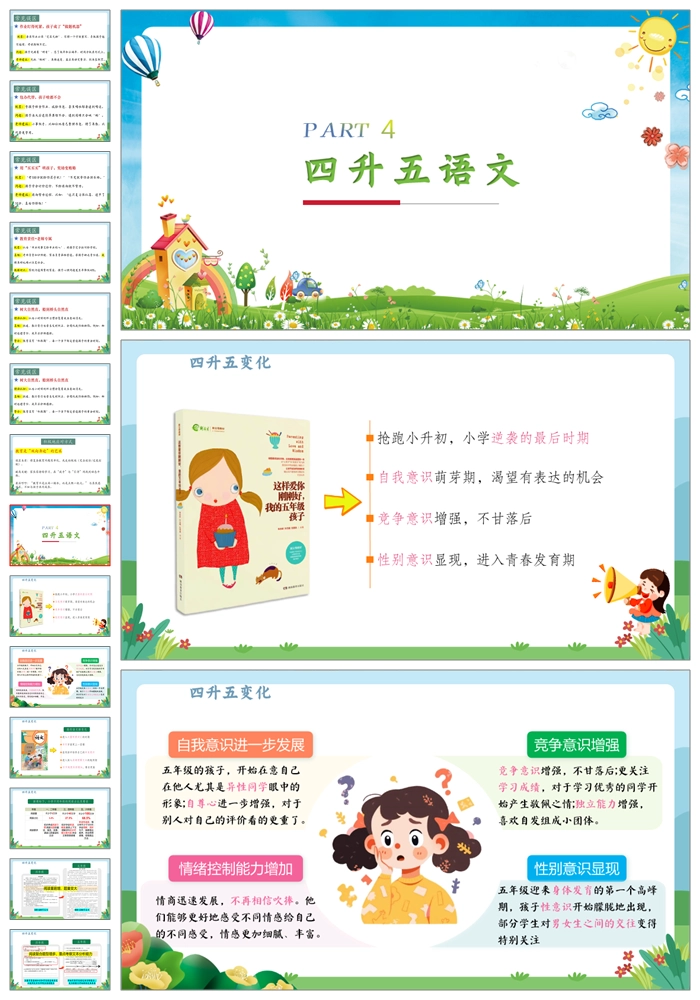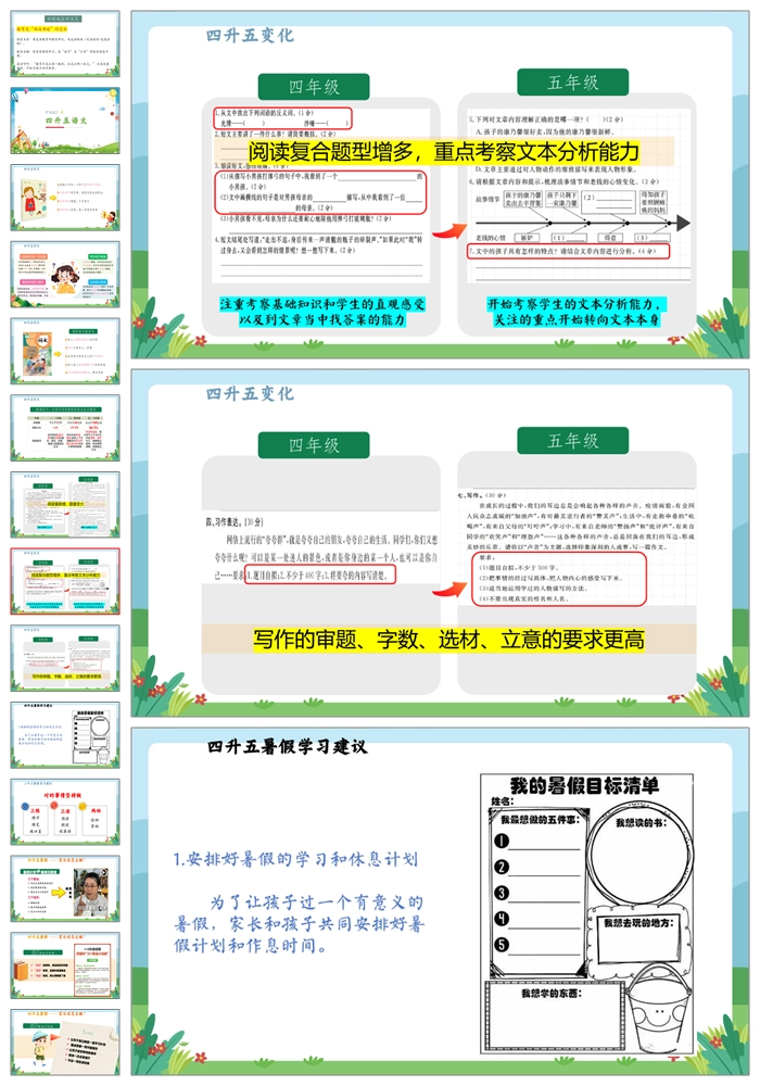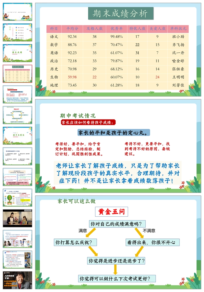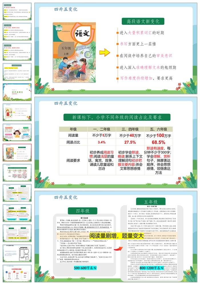 【8433】四年级下(四升五)期末语文家长会ppt课件+配套发言稿