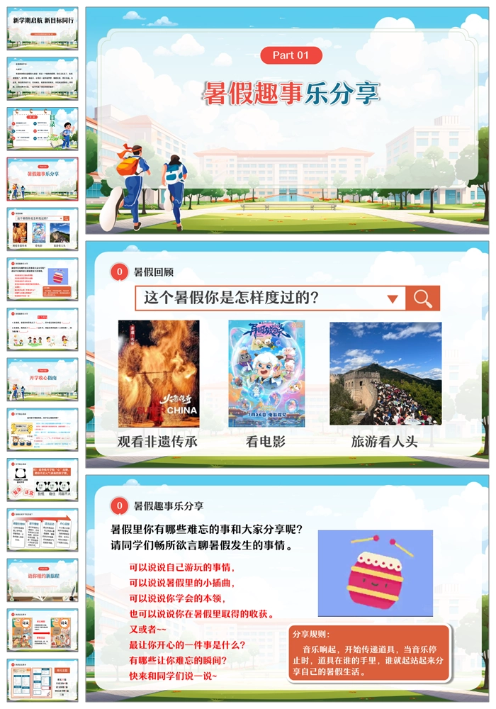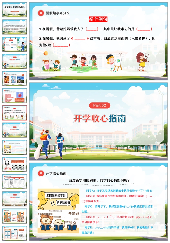 【8511】《新学期启航新目标同行》四年级上学期开学第一课主题班会PPT课件+逐字稿