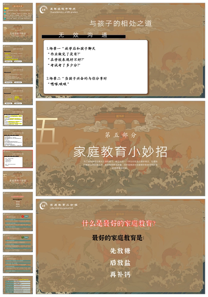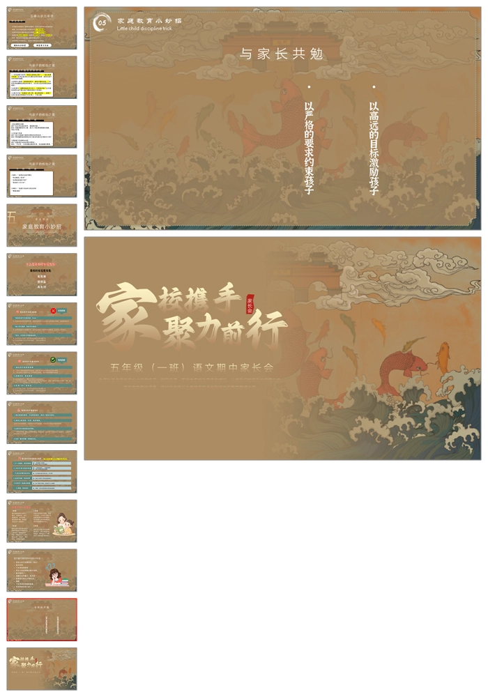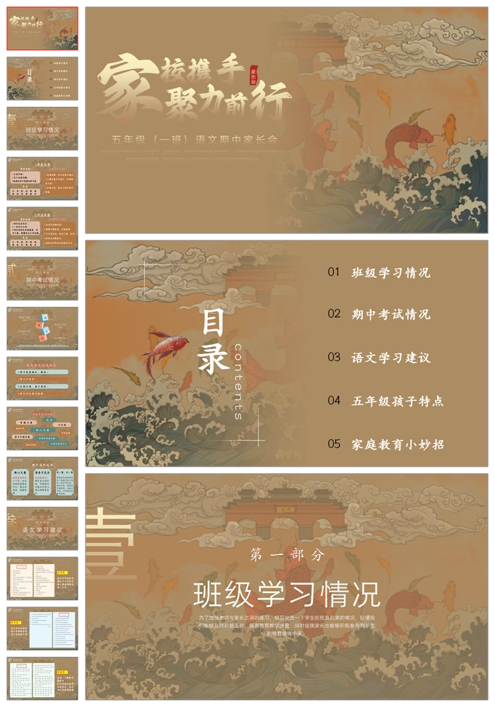 【5102】五上语文期中家长会《家校携手聚力前行》五年级上学期期中语文家长会ppt课件+发言稿+暖场视频