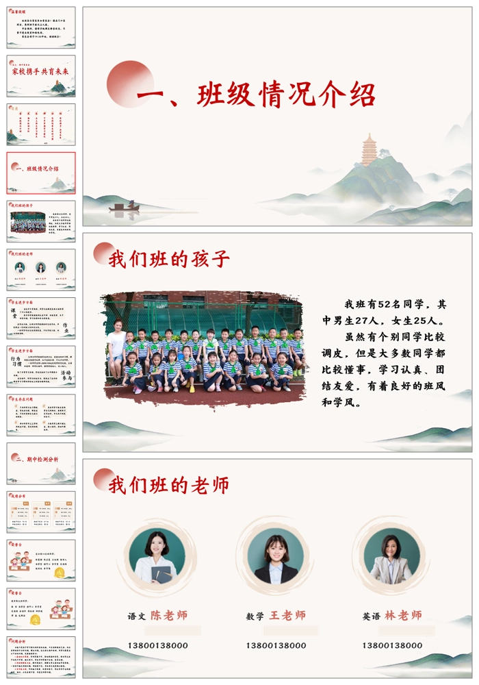 【5108】五上语文期中家长会《家校携手共育未来》五年级上学期期中家长会ppt课件+发言稿+暖场视频