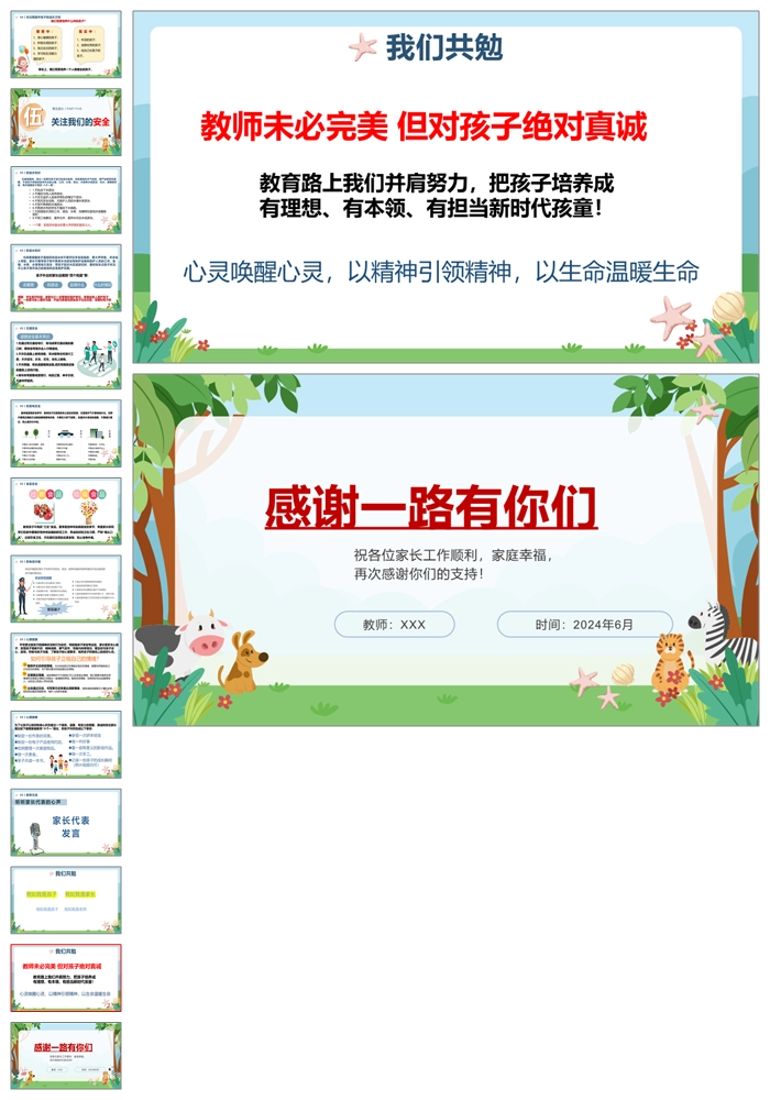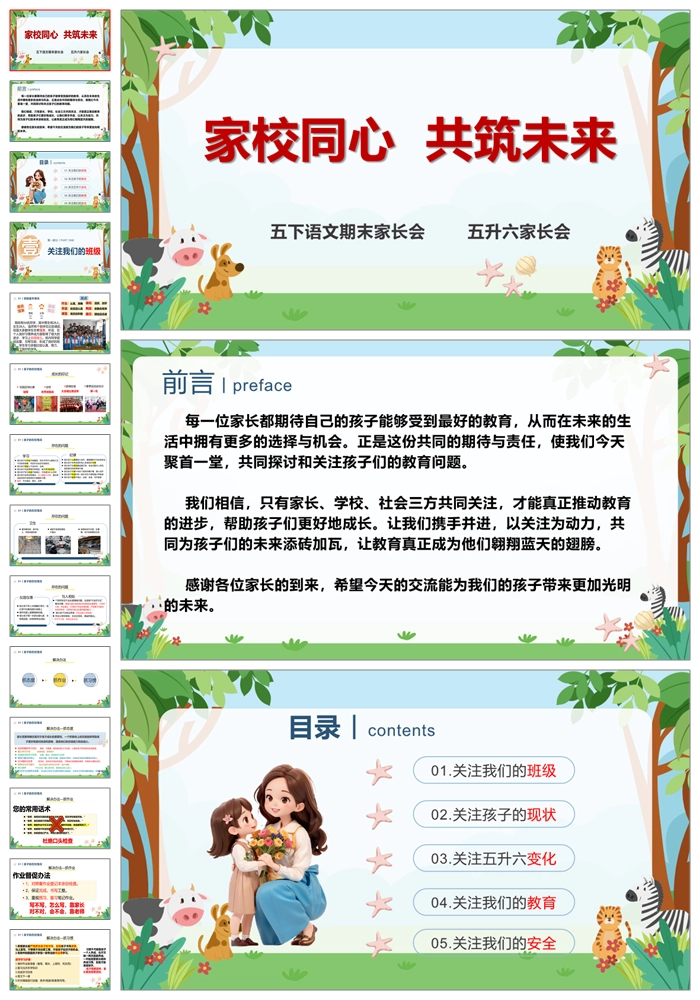 【8286】《家校同心共筑未来》五年级下册语文期末家长会PPT(课件+发言稿+暖场视频)