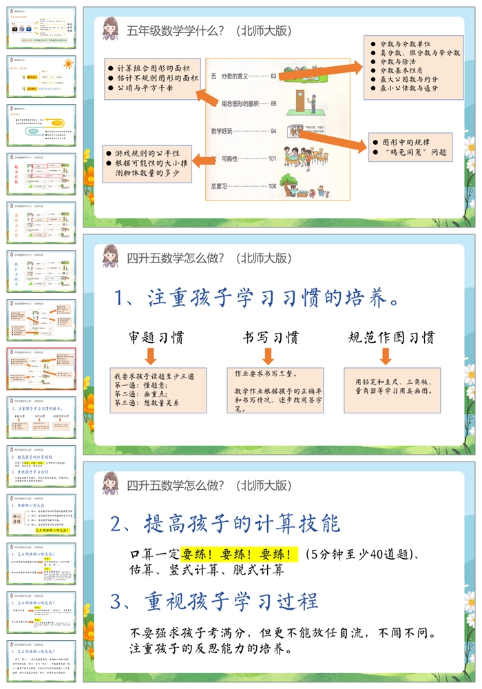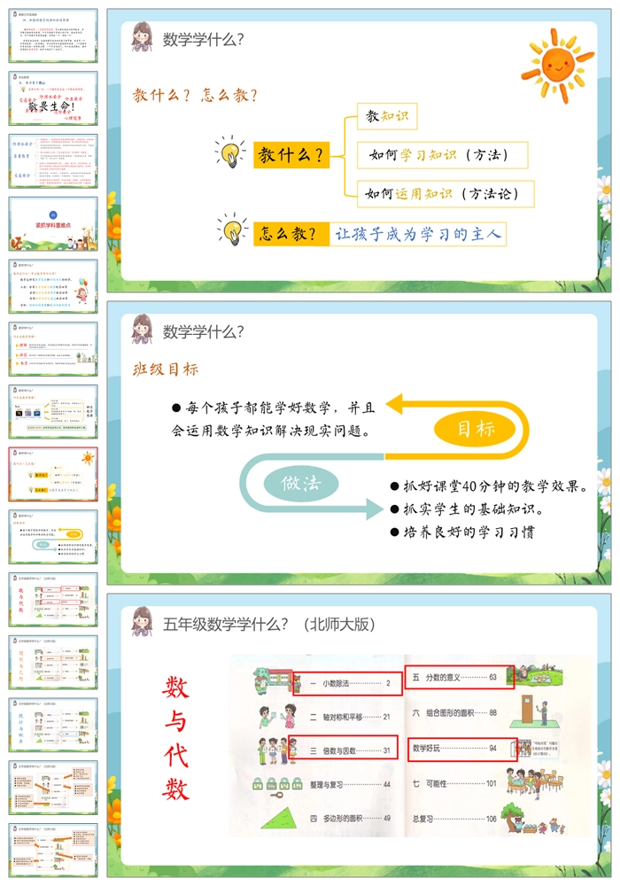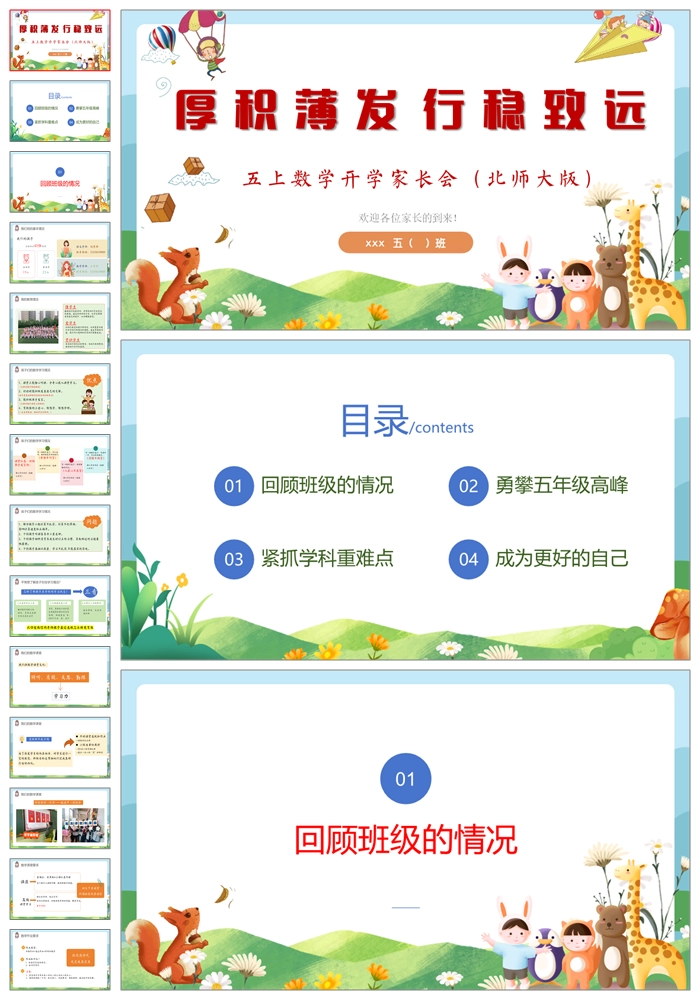 【8493】五年级上学期北师大版数学《厚积薄发行稳致远》五年级秋季开学第一课家长会ppt课件+发言稿