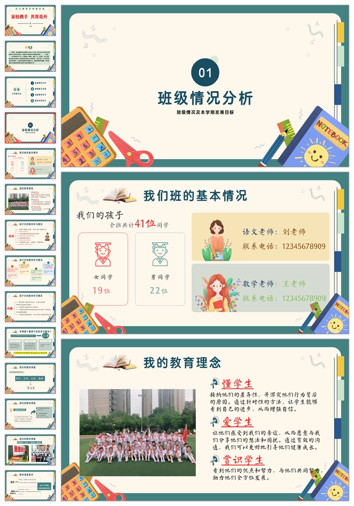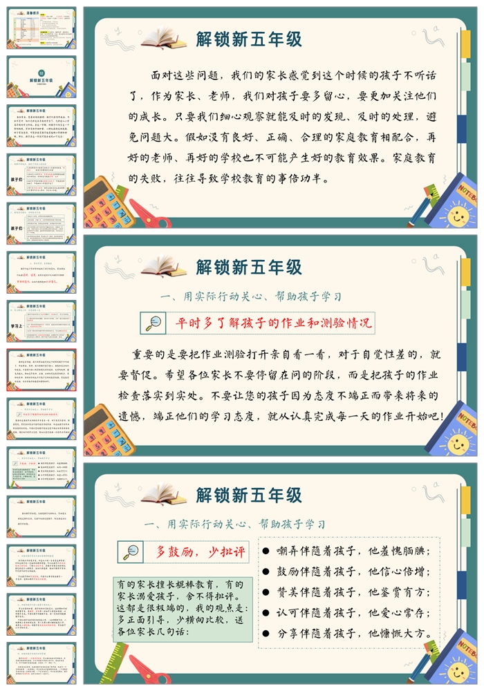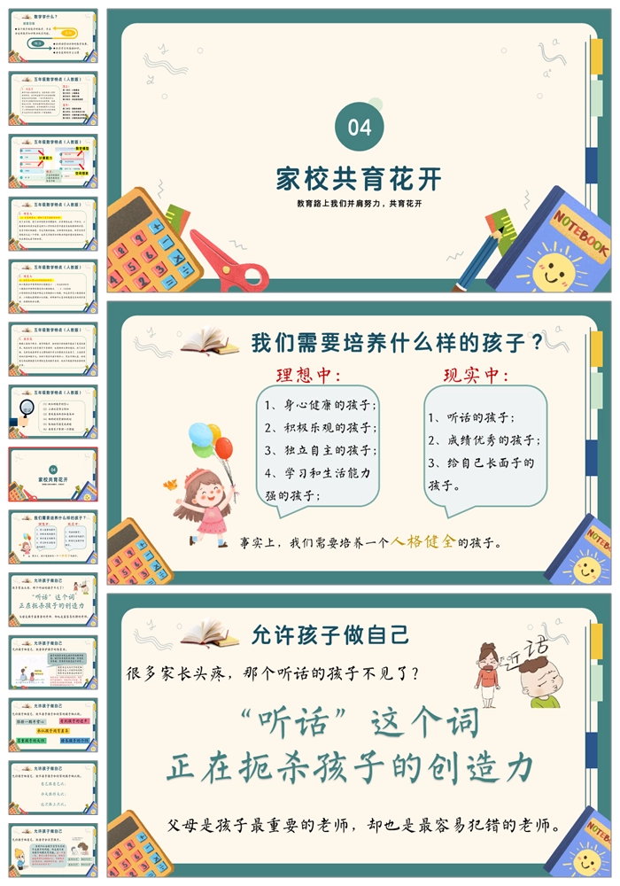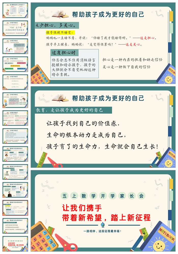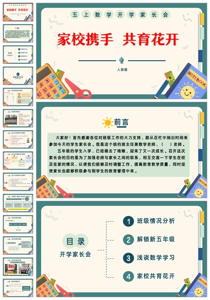 【8495】五年级上学期人教版版数学《家校携手 共育花开》五年级秋季开学第一课家长会ppt课件+发言稿