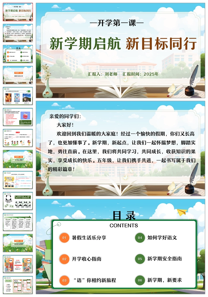 【8512】《新学期启航新目标同行》五年级上学期开学第一课PPT课件+逐字稿
