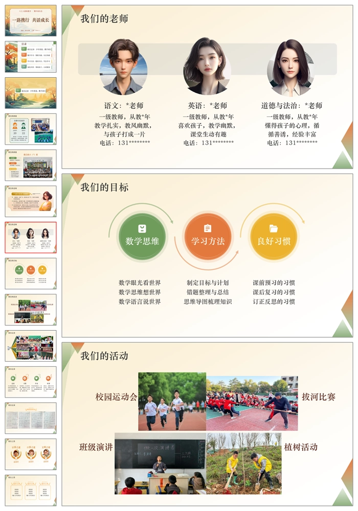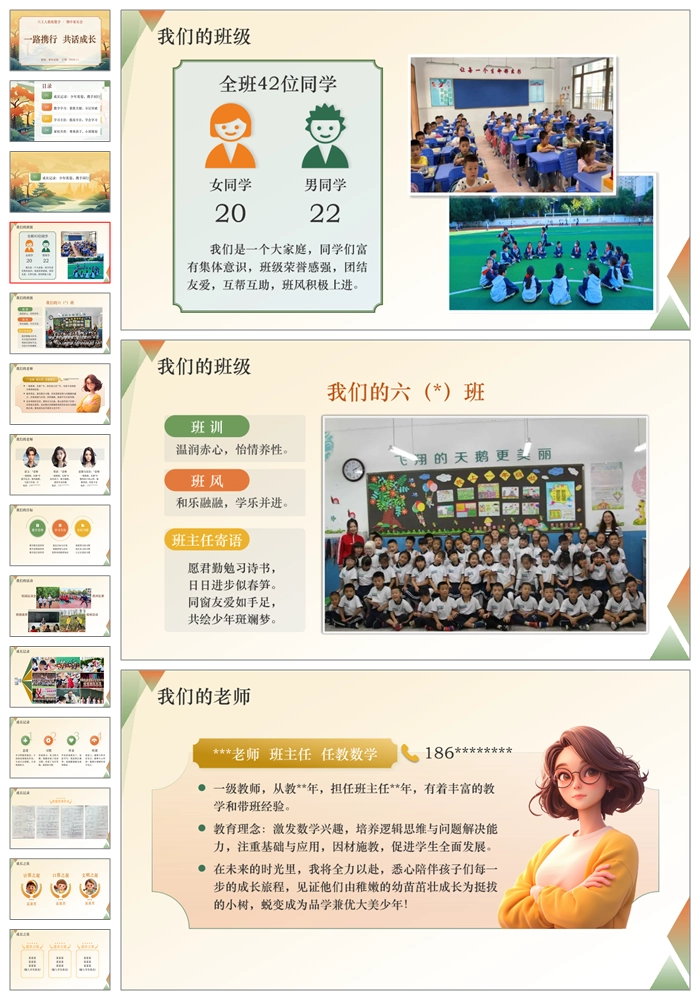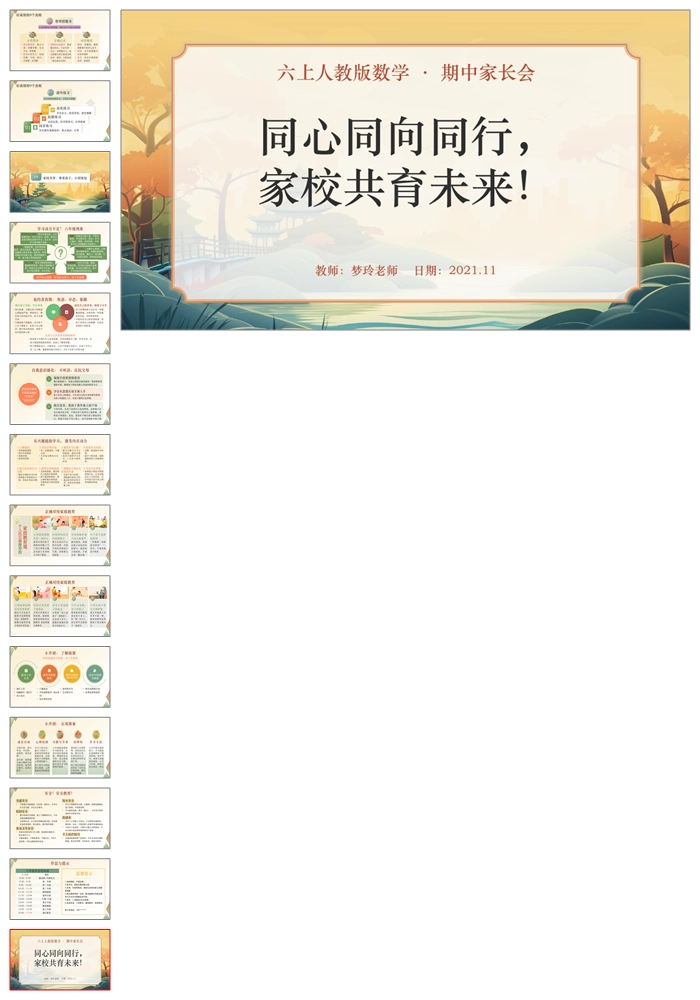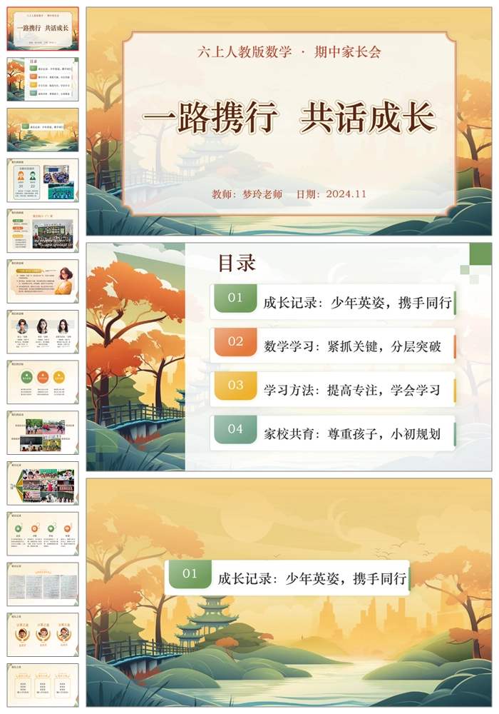 【5115】六上人教版数学期中家长会《一路携行共话成长》六年级期中家长会ppt课件+发言稿