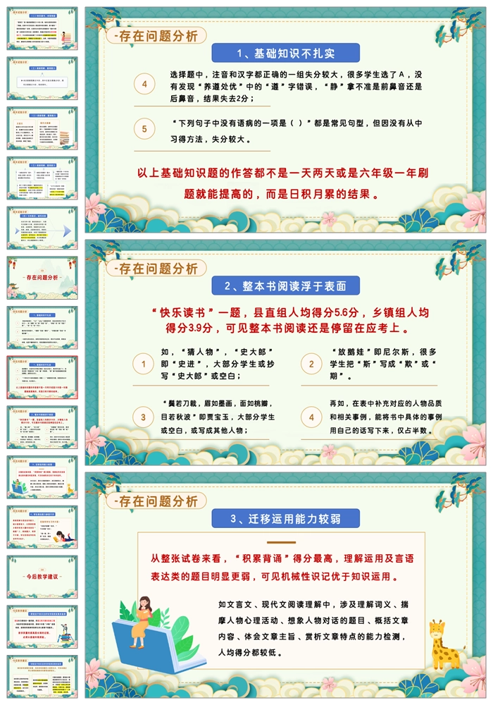 【8402】【六下】【语文】【研思分析 增效提质】六年级语文期末质量分析PPT(课件+发言稿)