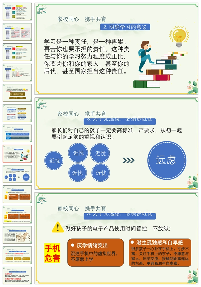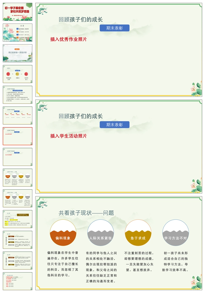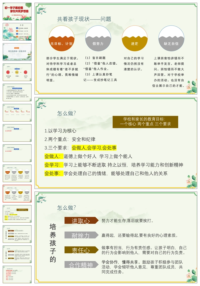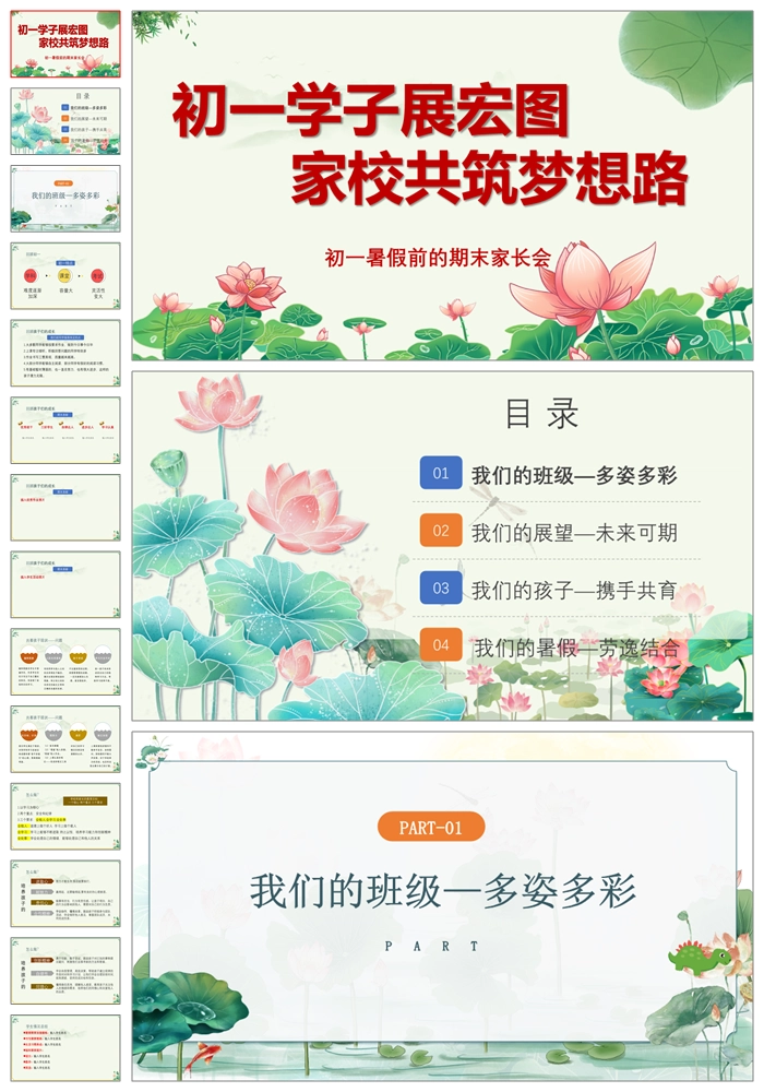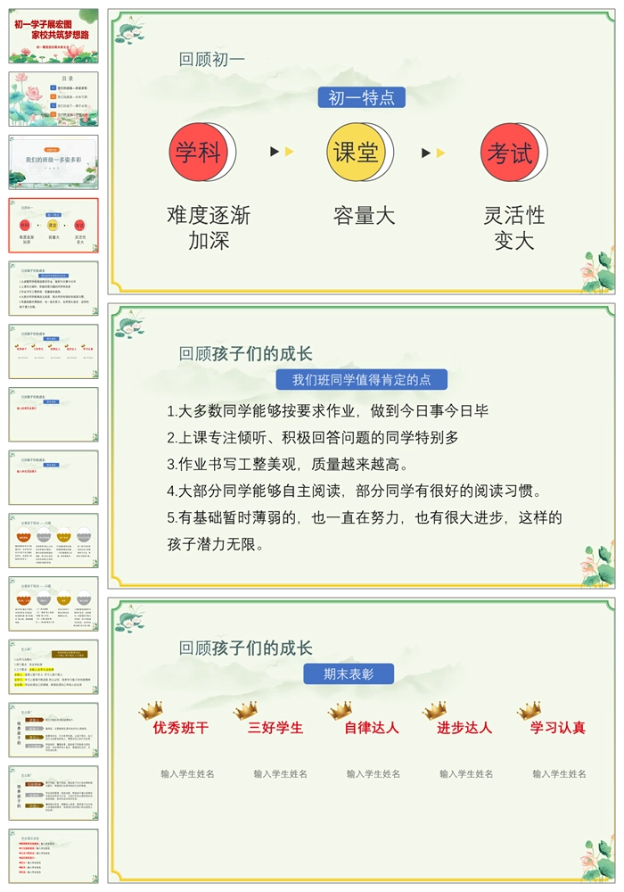 【8289】《初一学子展宏图家校共筑梦想路》七年级暑假前期末家长会PPT(课件+发言稿+暖场视频)