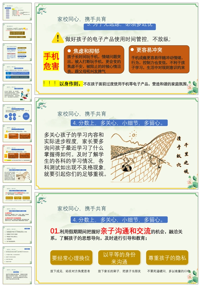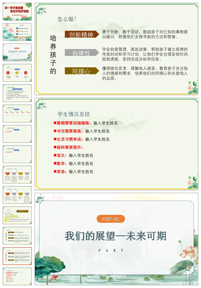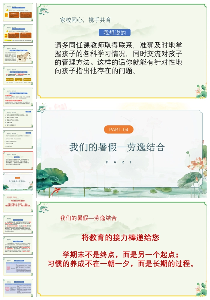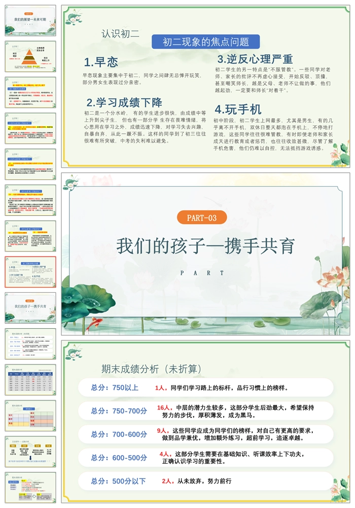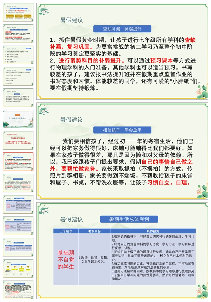 【8289】《初一学子展宏图家校共筑梦想路》七年级暑假前期末家长会PPT(课件+发言稿+暖场视频)