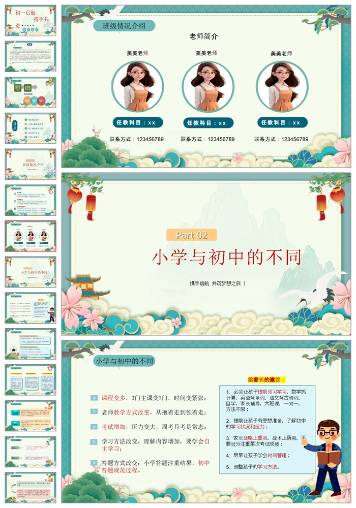 【8410】【初一家长会】《初一启航携手共进》初一开学家长会初一新生家长会PPT(课件+发言稿)