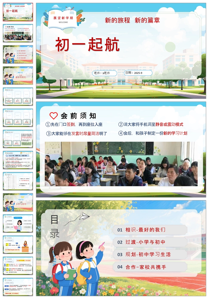 【8550】初一上学期开学家长会《初一起航扬帆逐梦》初一开学家长会ppt课件+发言稿