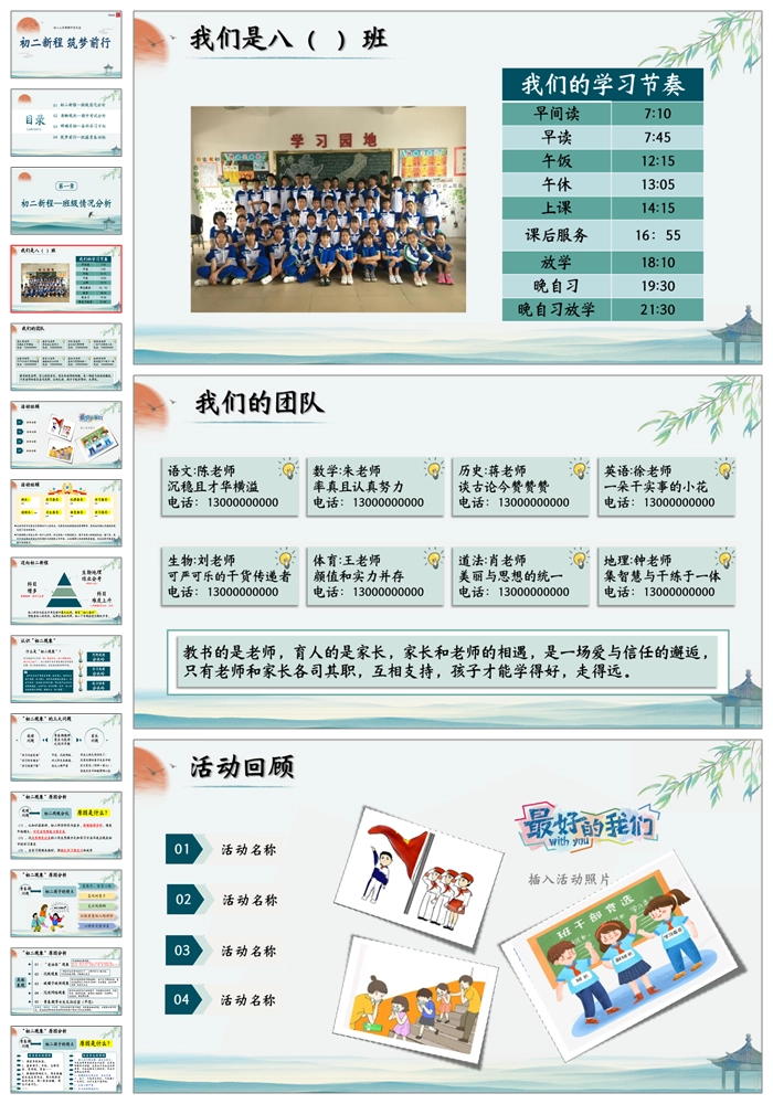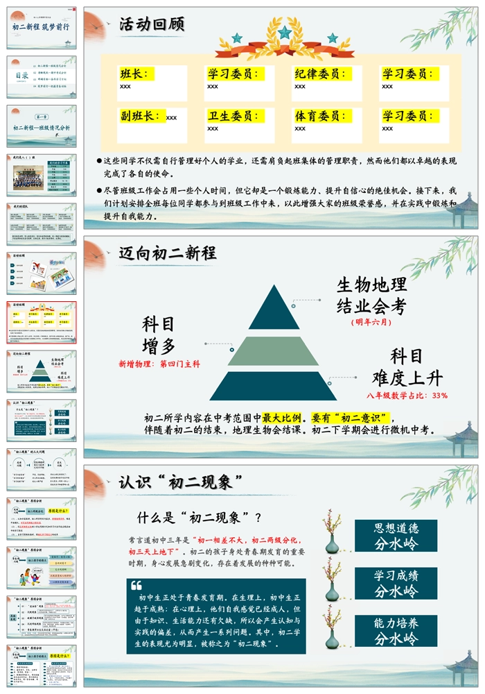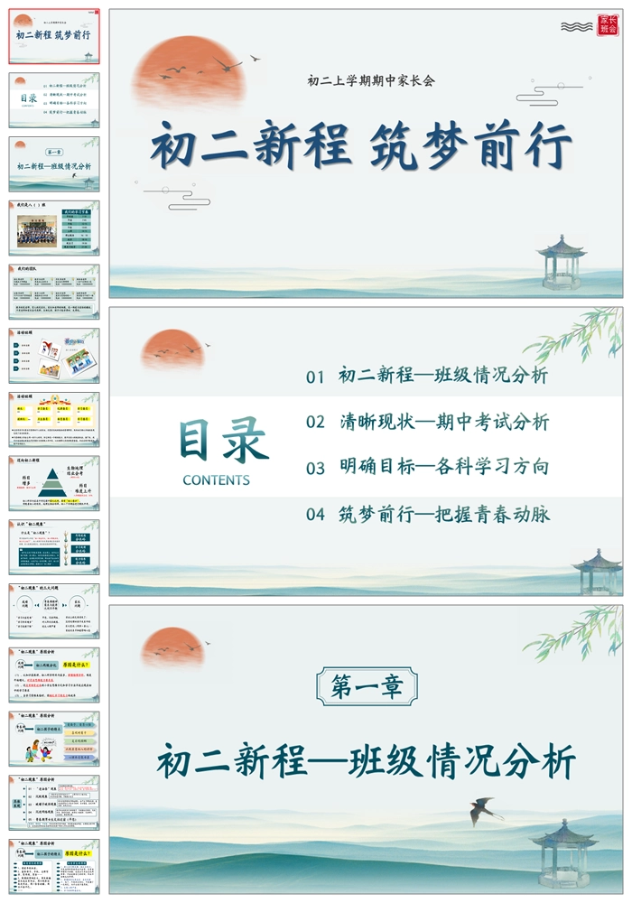 【5116】初二上学期期中家长会《初二新程 筑梦前行》八年级期中家长会ppt课件+发言稿
